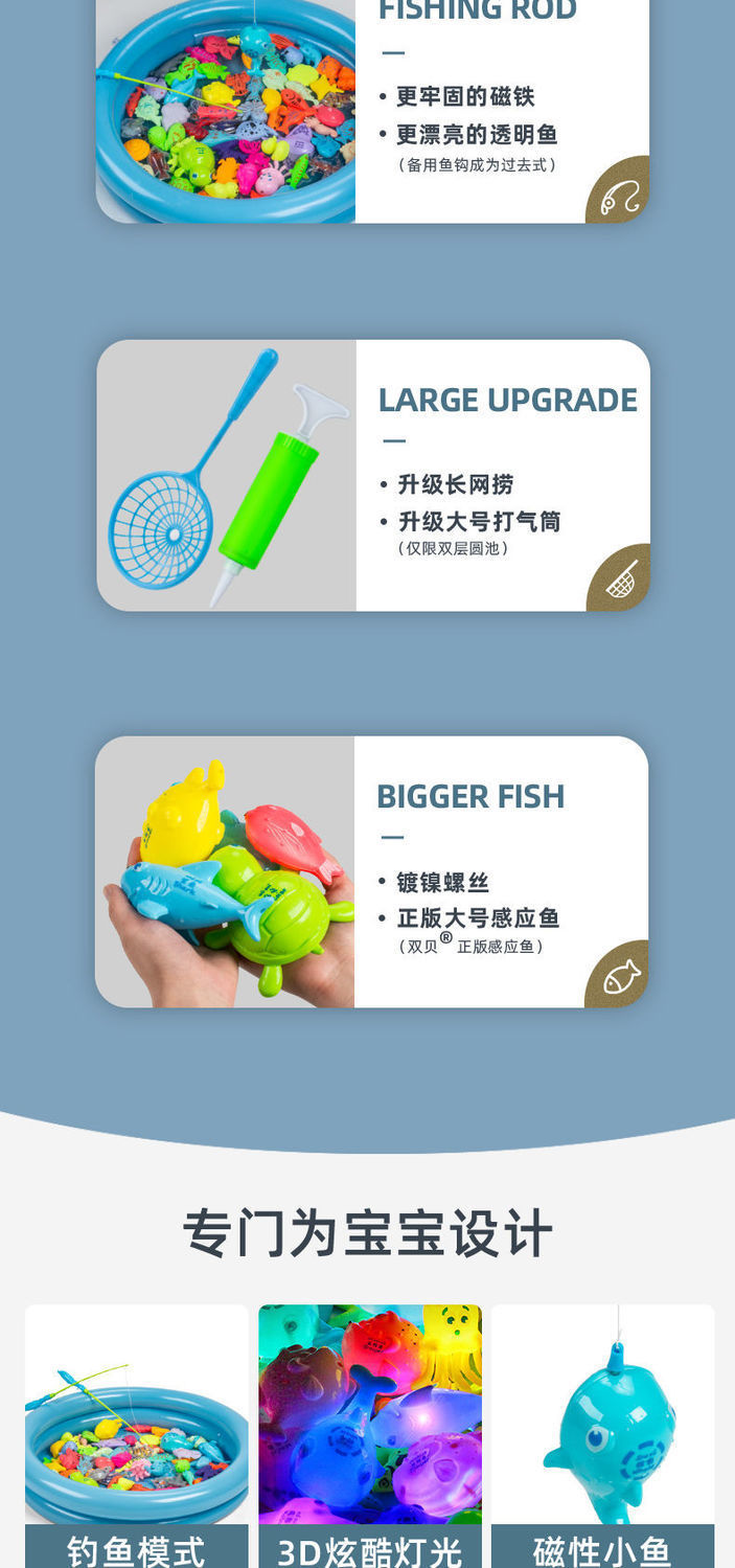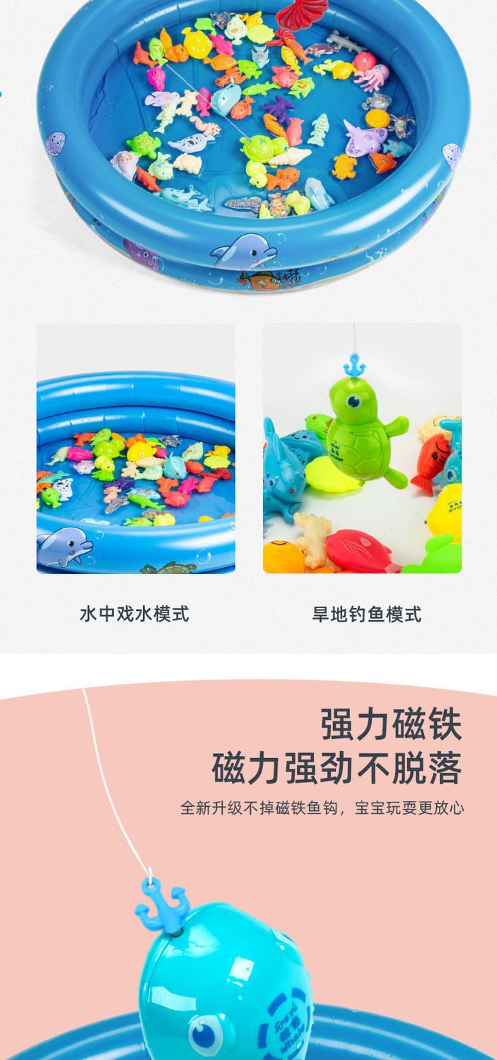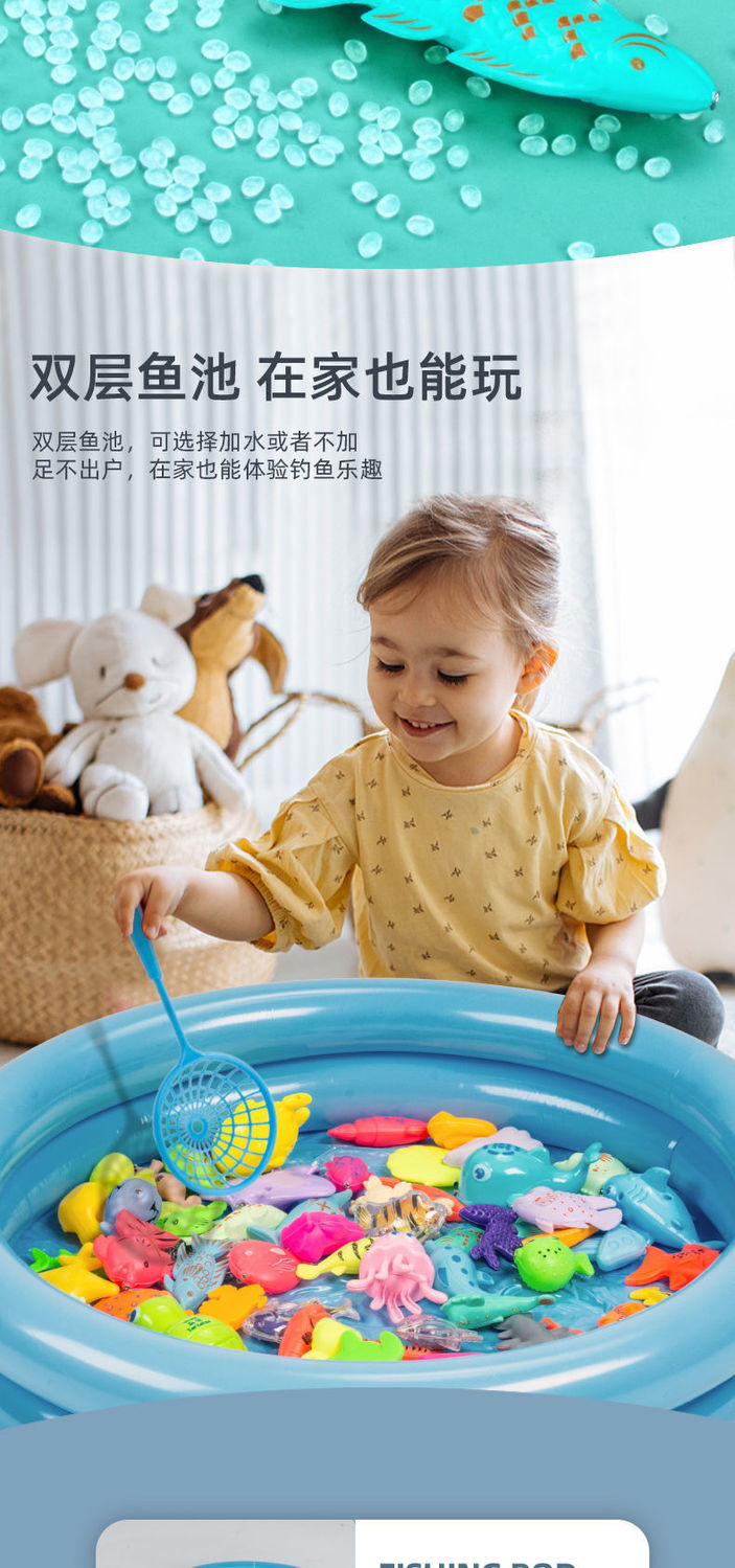double layer 58 pieces: 50 fish 2 rods 2 nets 2 barrels