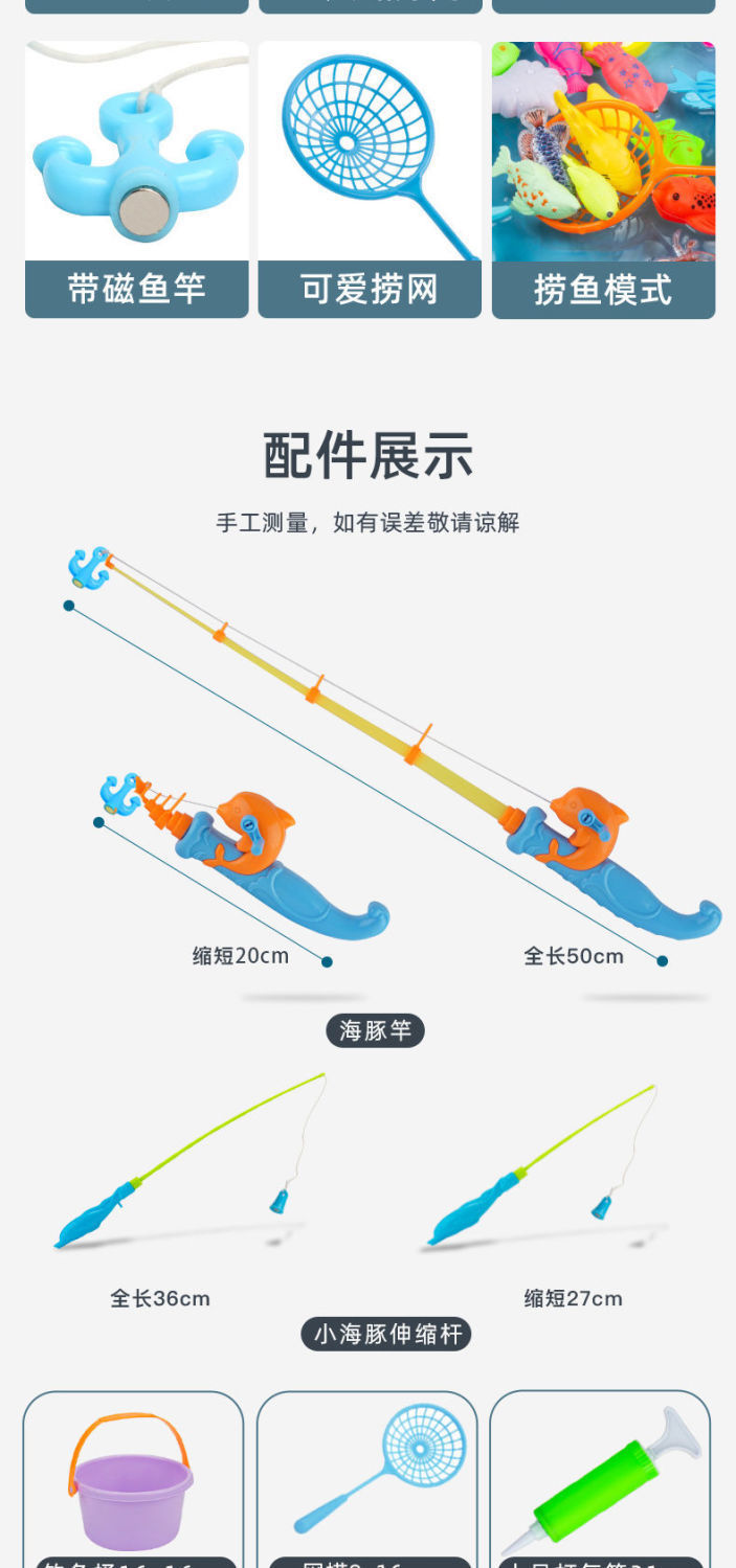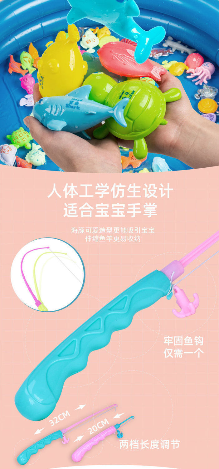 34-piece set: 30 fish 2 dolphin rod 2 long net
