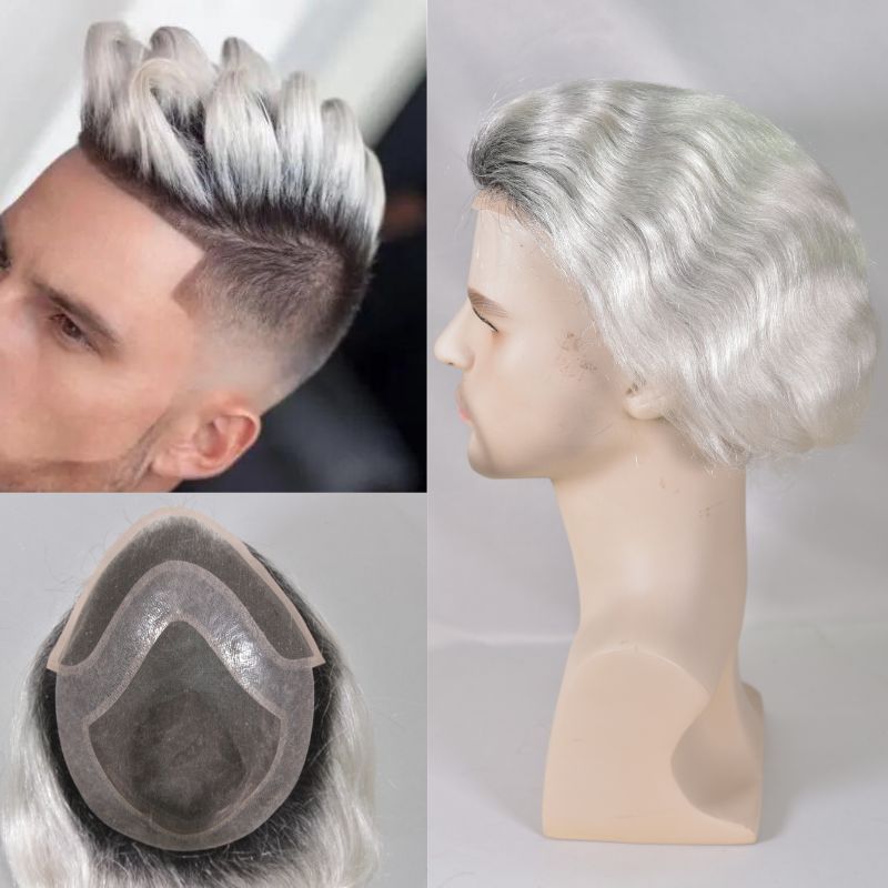 Men's hair toupee 1BTwhite10x8 ombre white