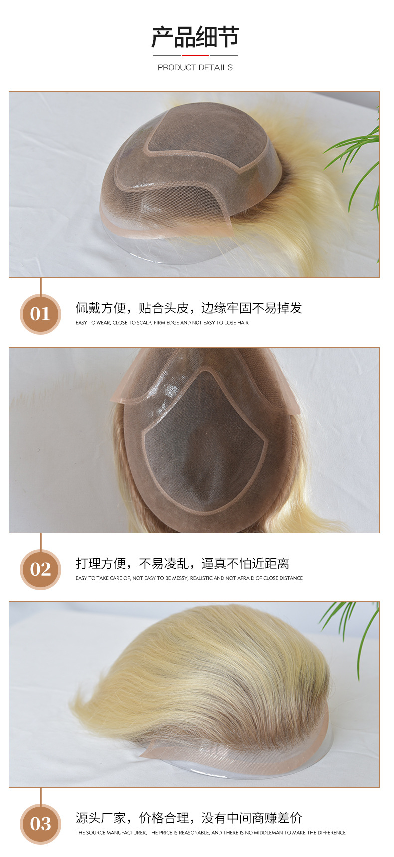 European and American male real human hair block