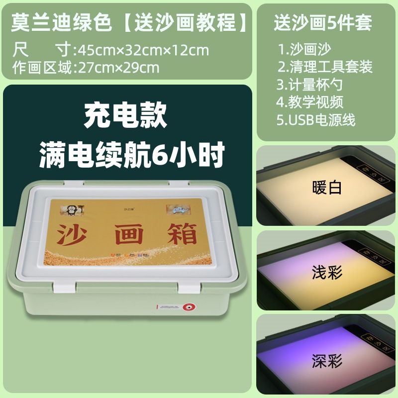 rechargeable morandi-green [gift box + sand painting video] + power plug
