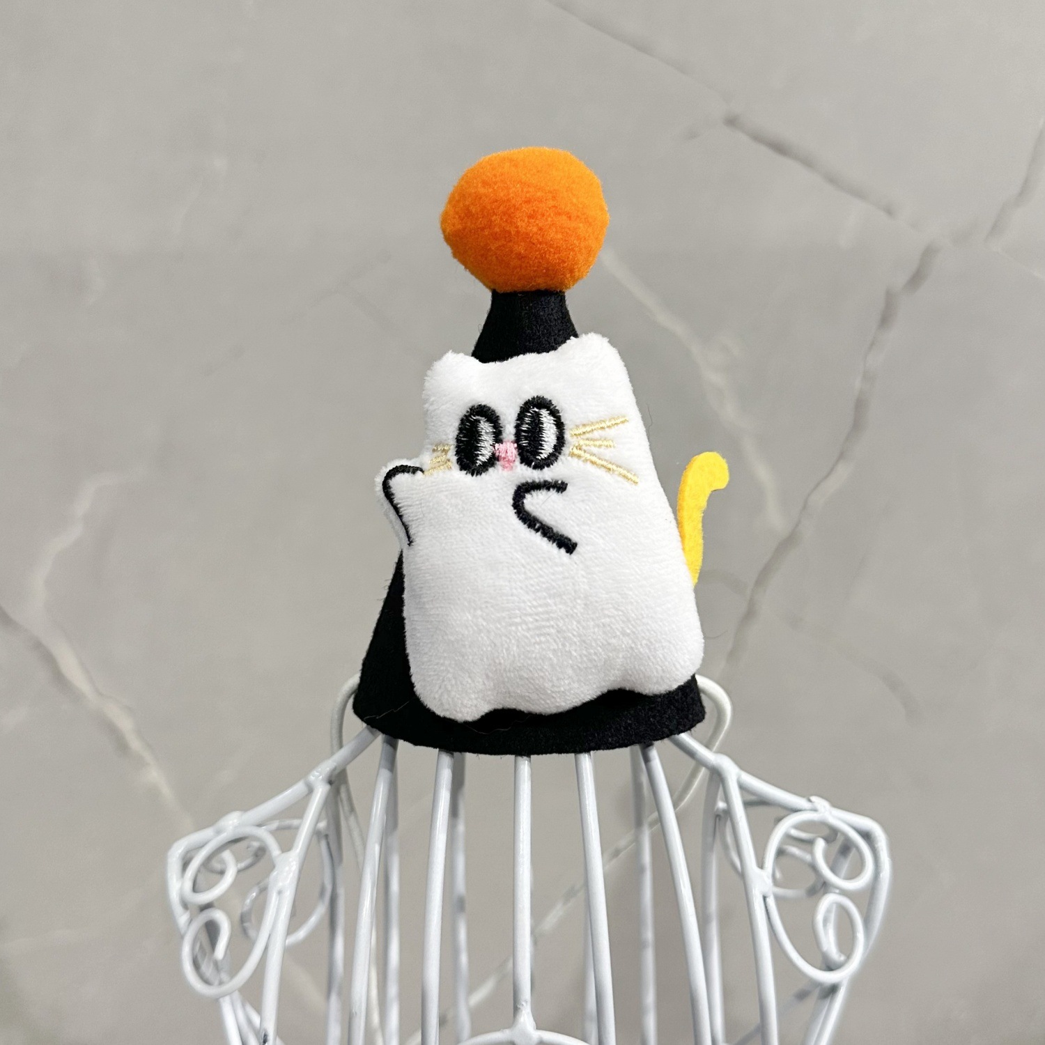 ghost cat-black fluffy ball cap
