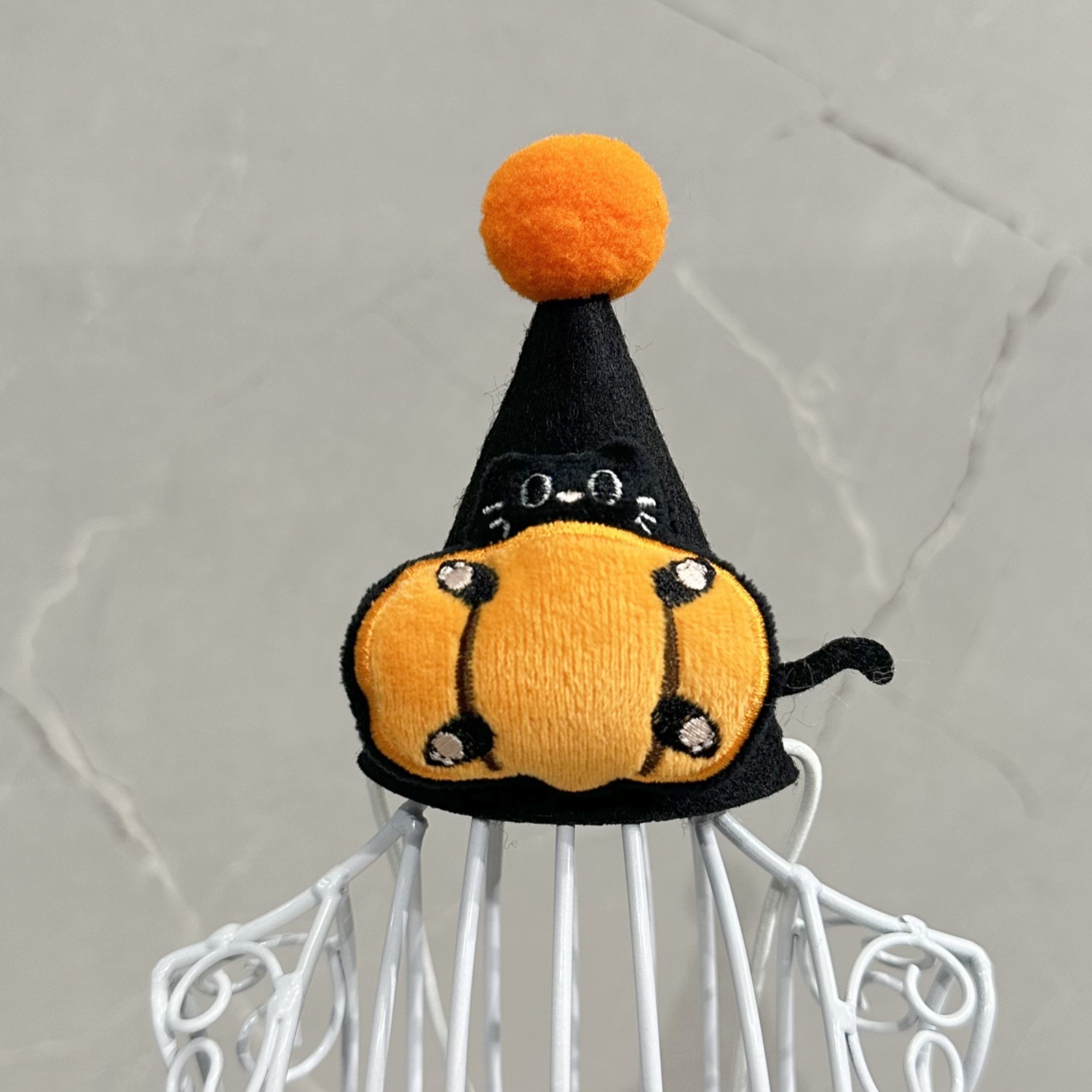 pumpkin cat-black fluffy ball cap