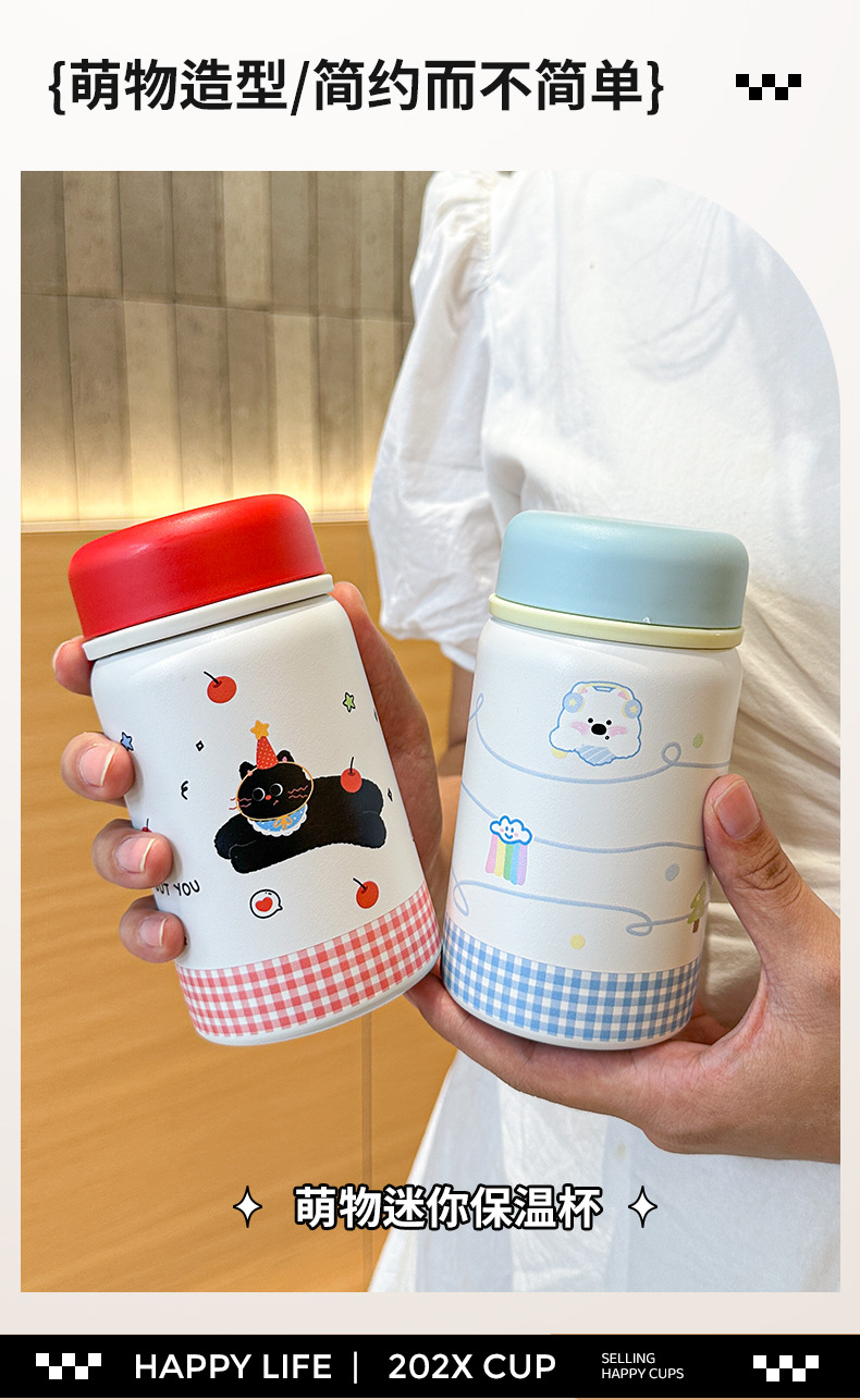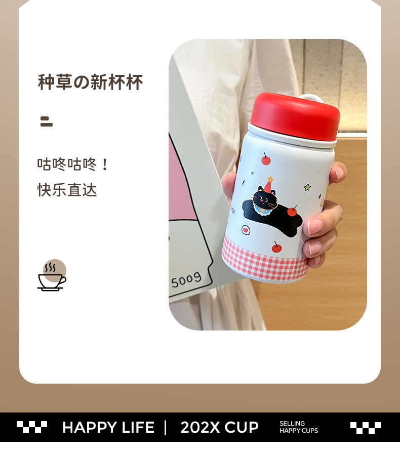 stainless steel water cup portable cold insulation cup boys and girls children mini good-looking straw rope pocket cup