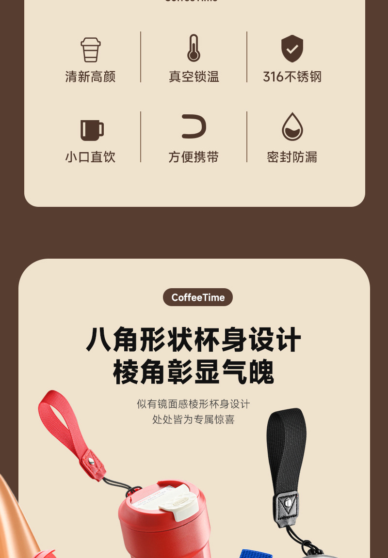 american 316 vacuum cup girl good-looking portable coffee cup dopamine color seamless insulated mug 2023
