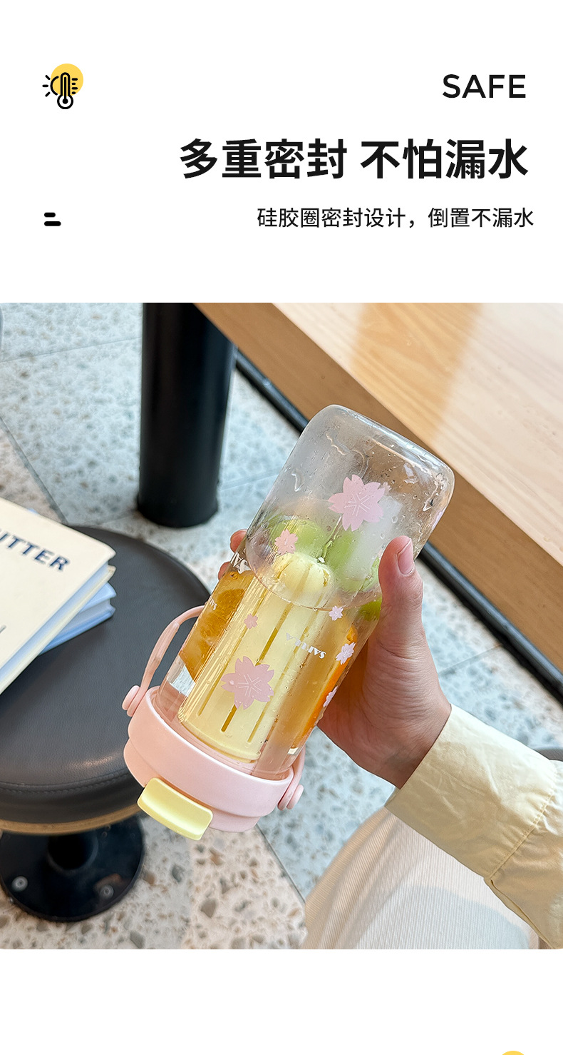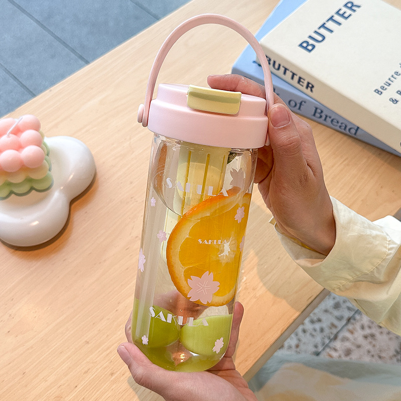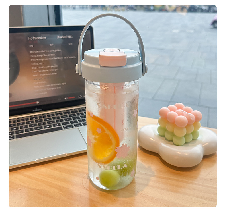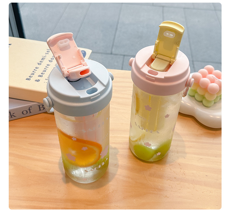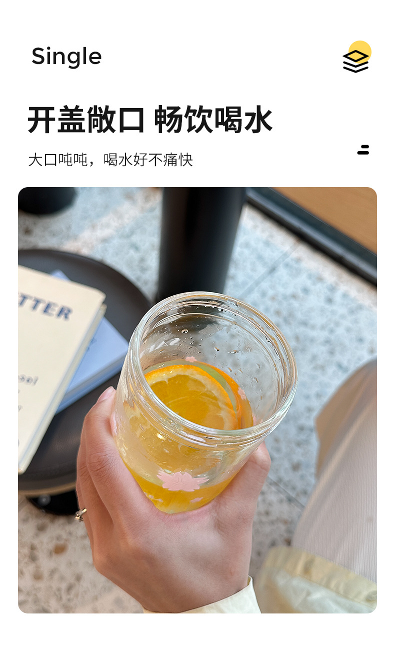 romantic portable cherry blossom glass cute girl good-looking heat-resistant glass with straw student portable cup