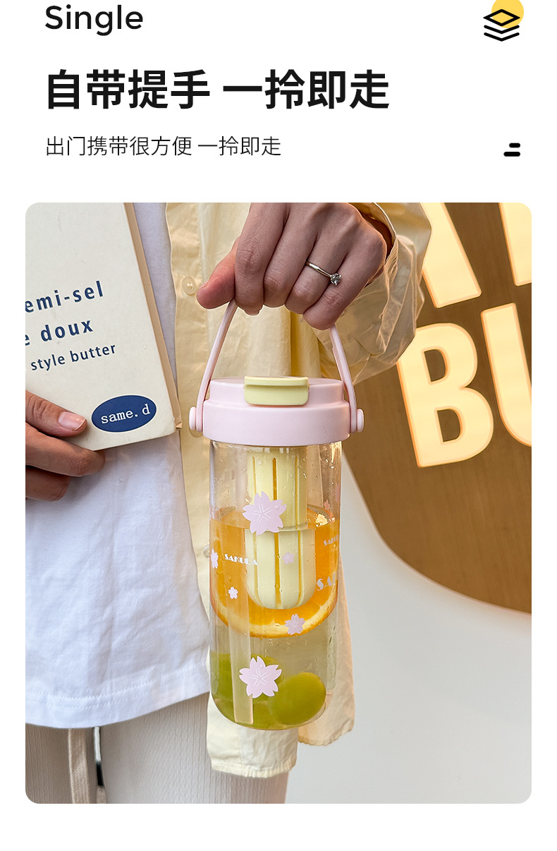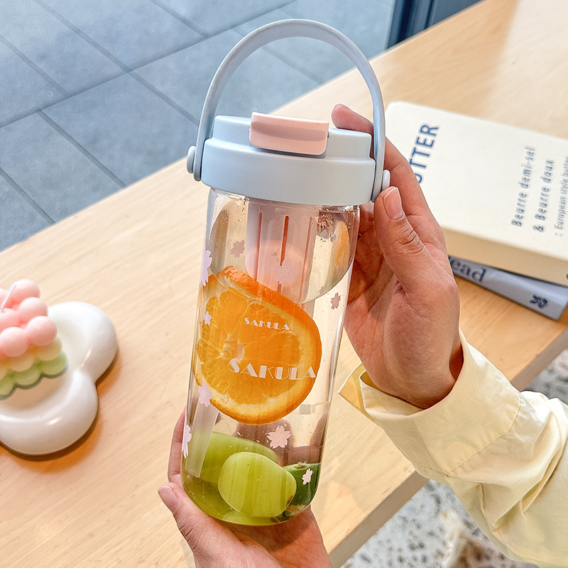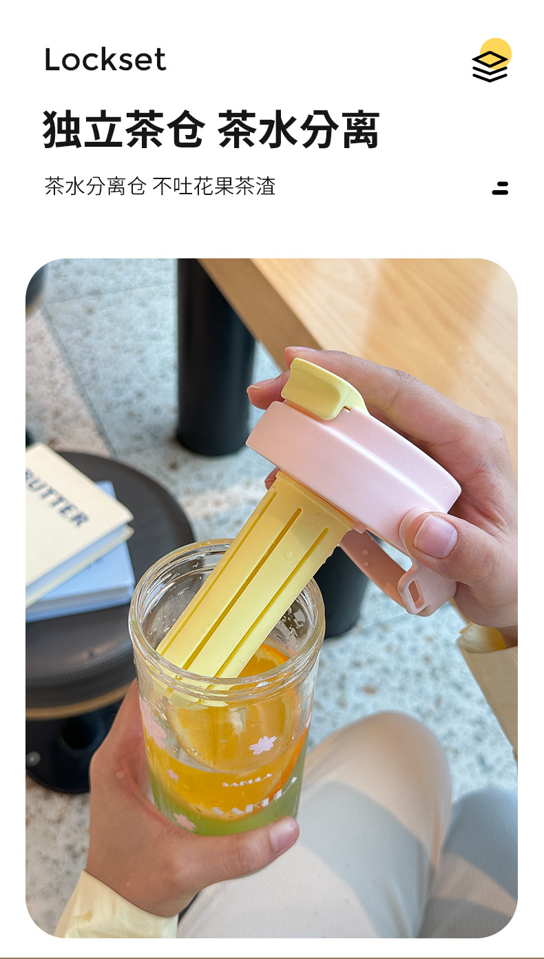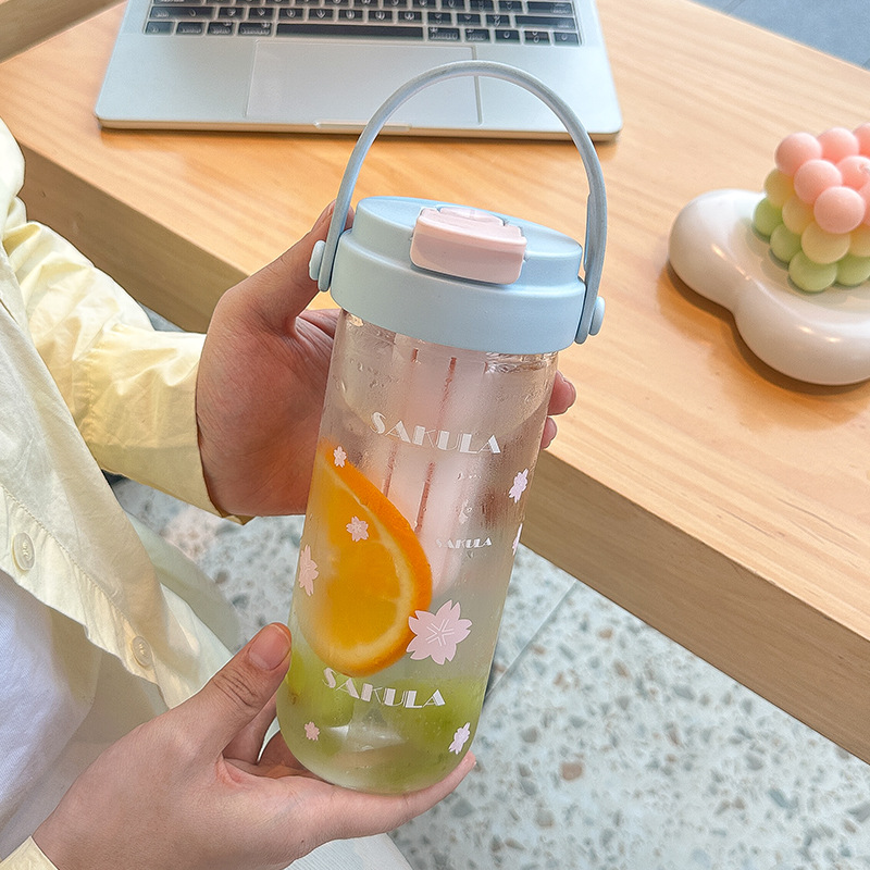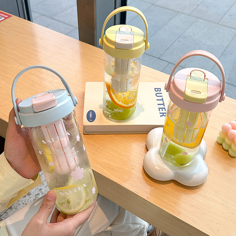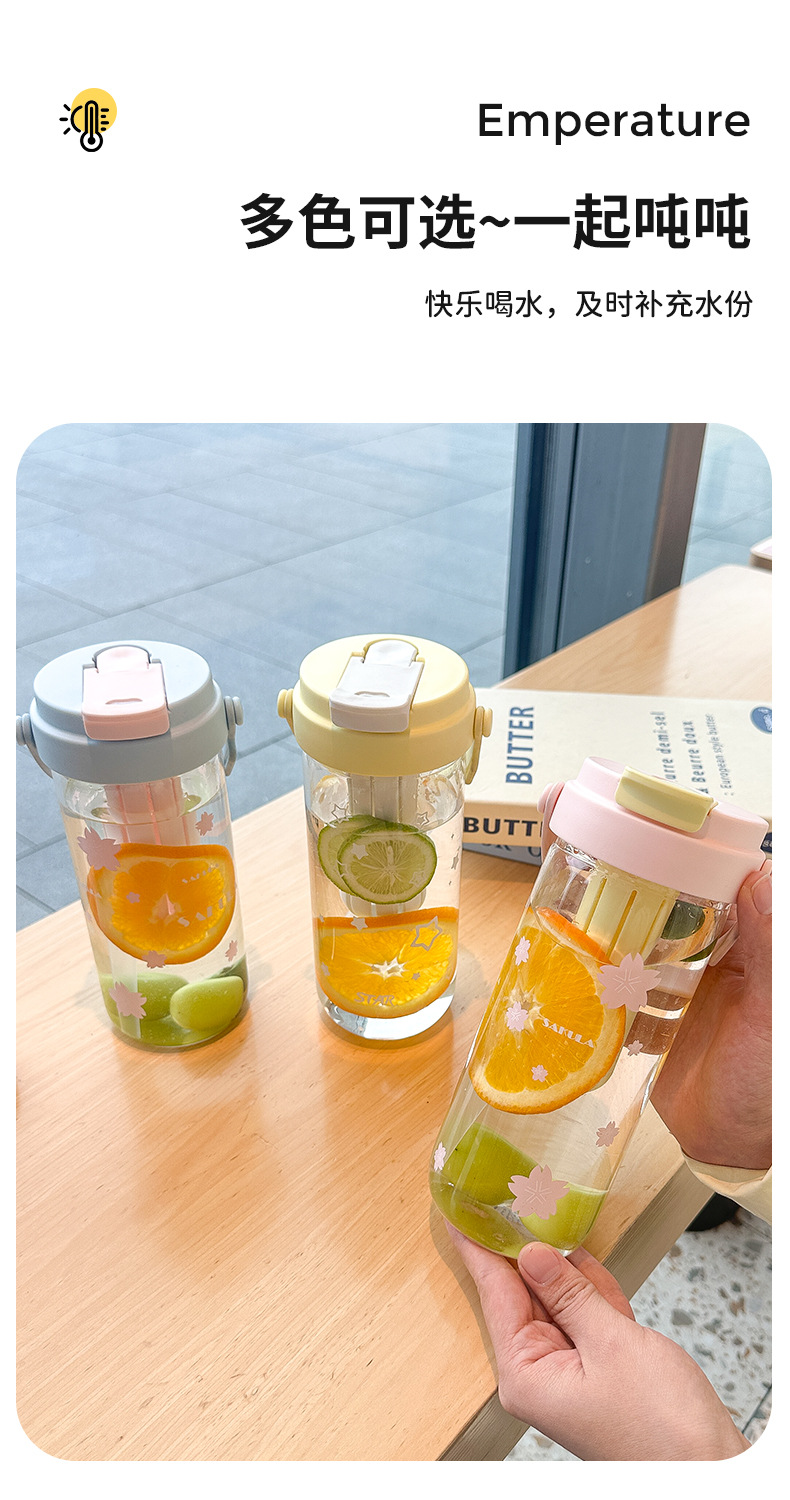 romantic portable cherry blossom glass cute girl good-looking heat-resistant glass with straw student portable cup