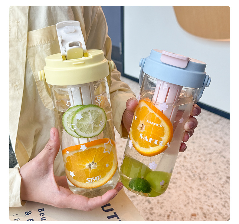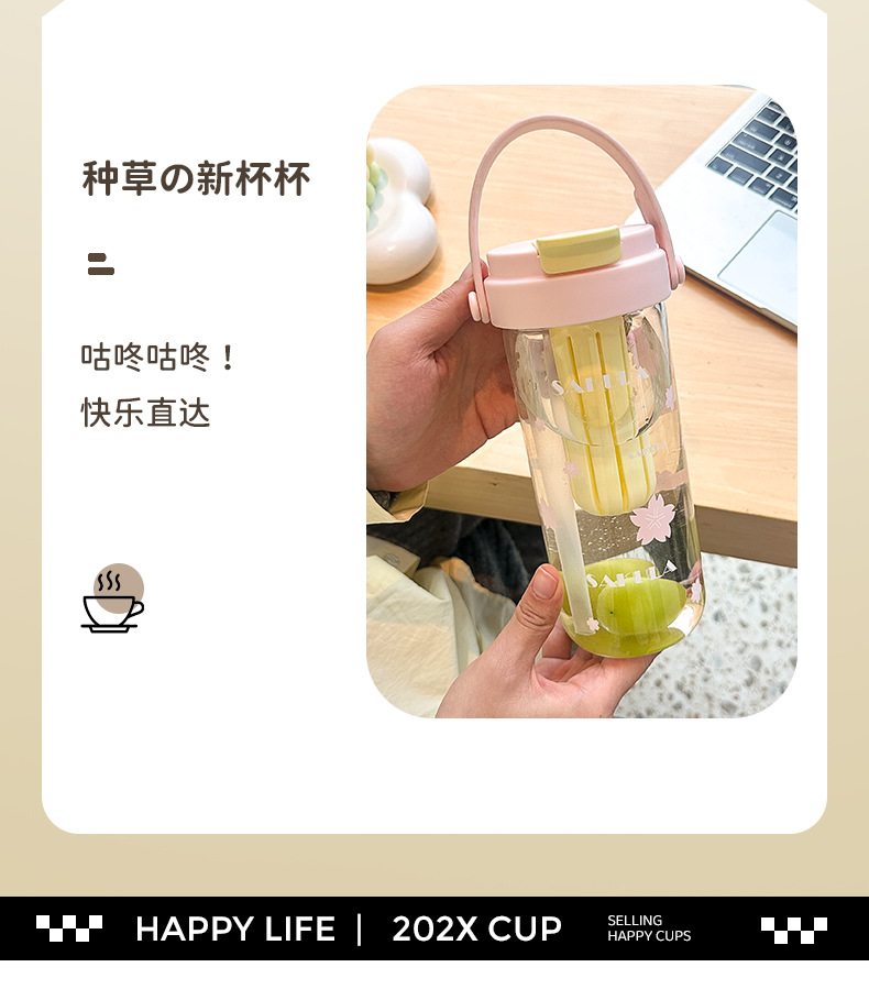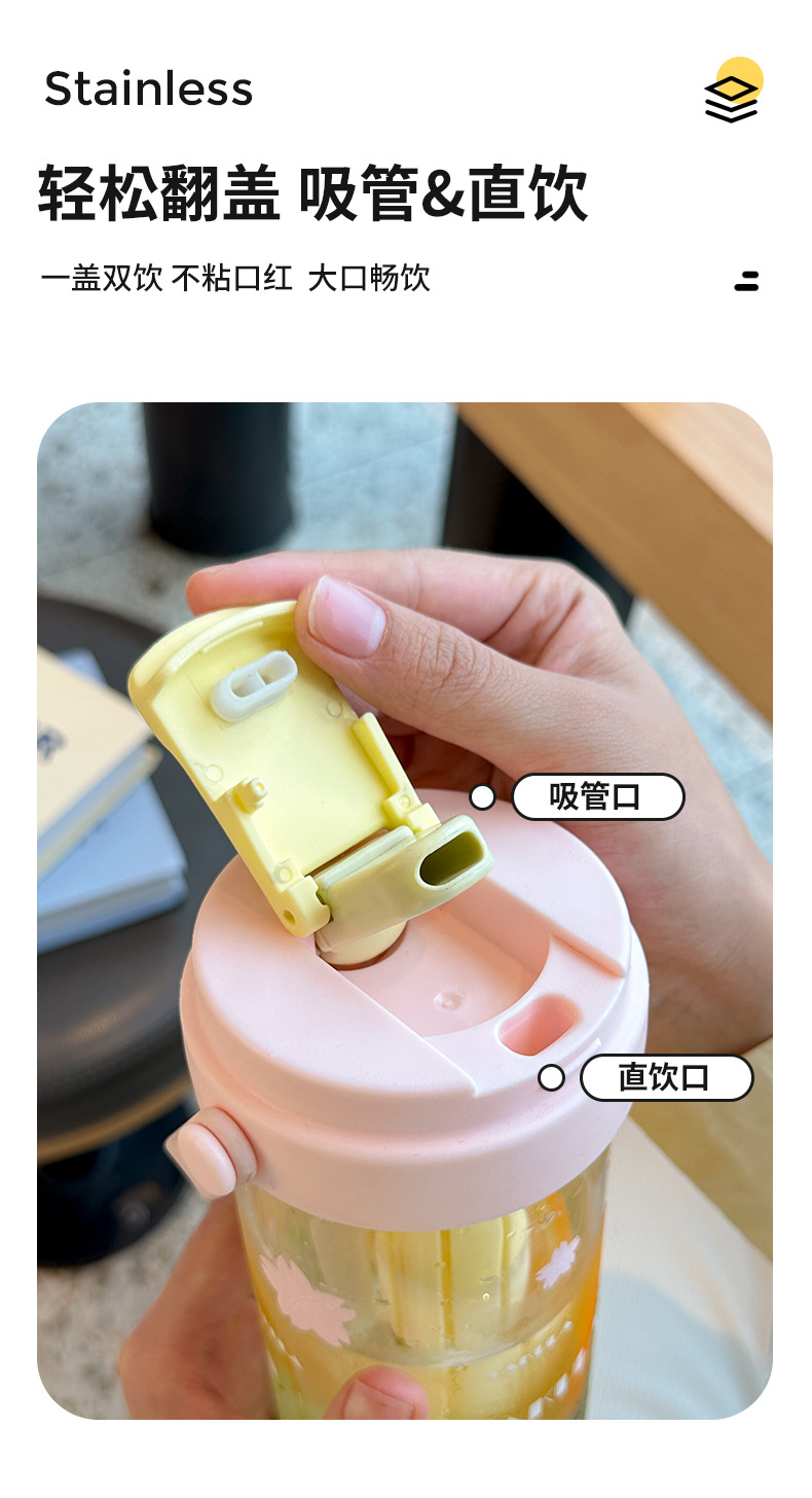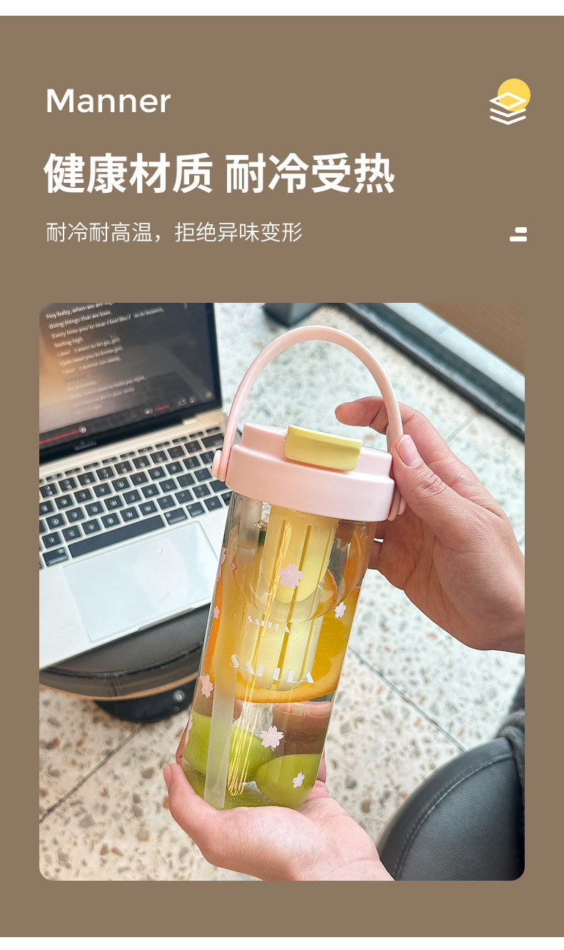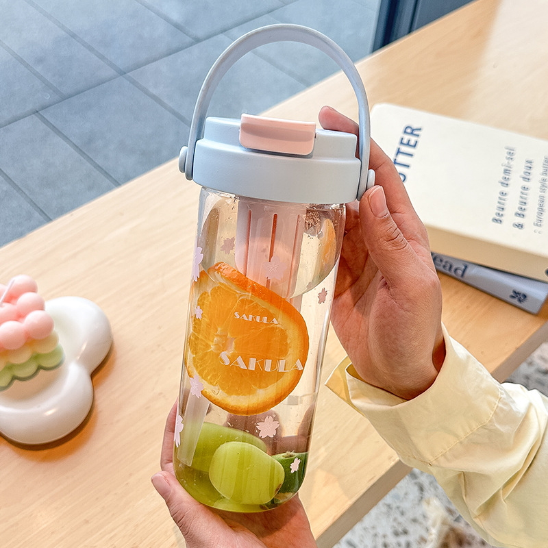 romantic portable cherry blossom glass cute girl good-looking heat-resistant glass with straw student portable cup