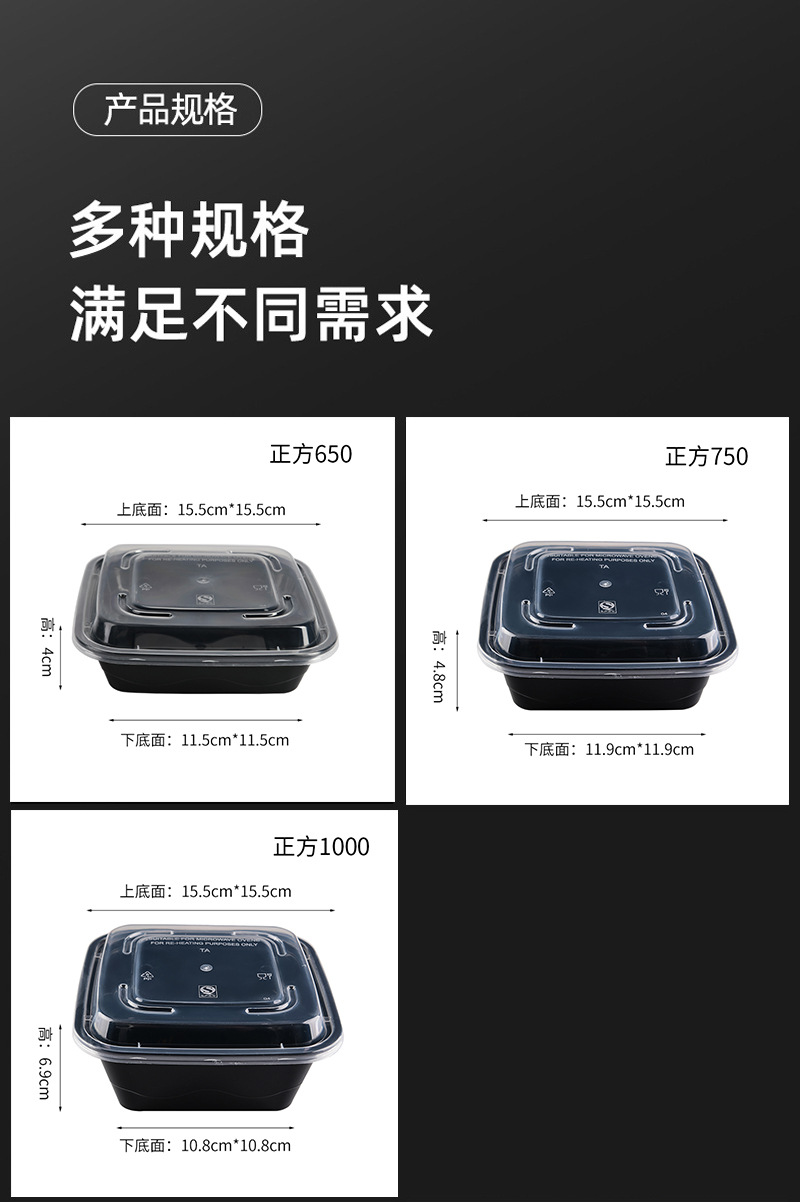 disposable lunch box square lunch box american black takeaway packing box barbecue bibimbap take-out box hamburger box