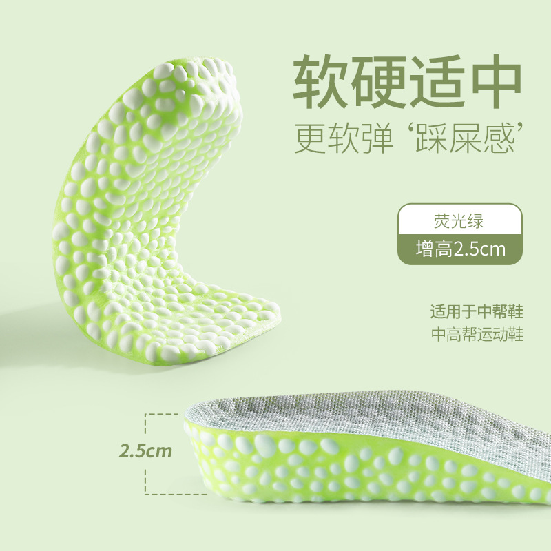 popcorn height increasing insole men's sports shock absorption invisible inner heightening shoe pad women's long standing comfortable not tired feet breathable insole