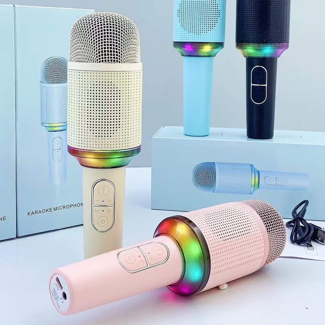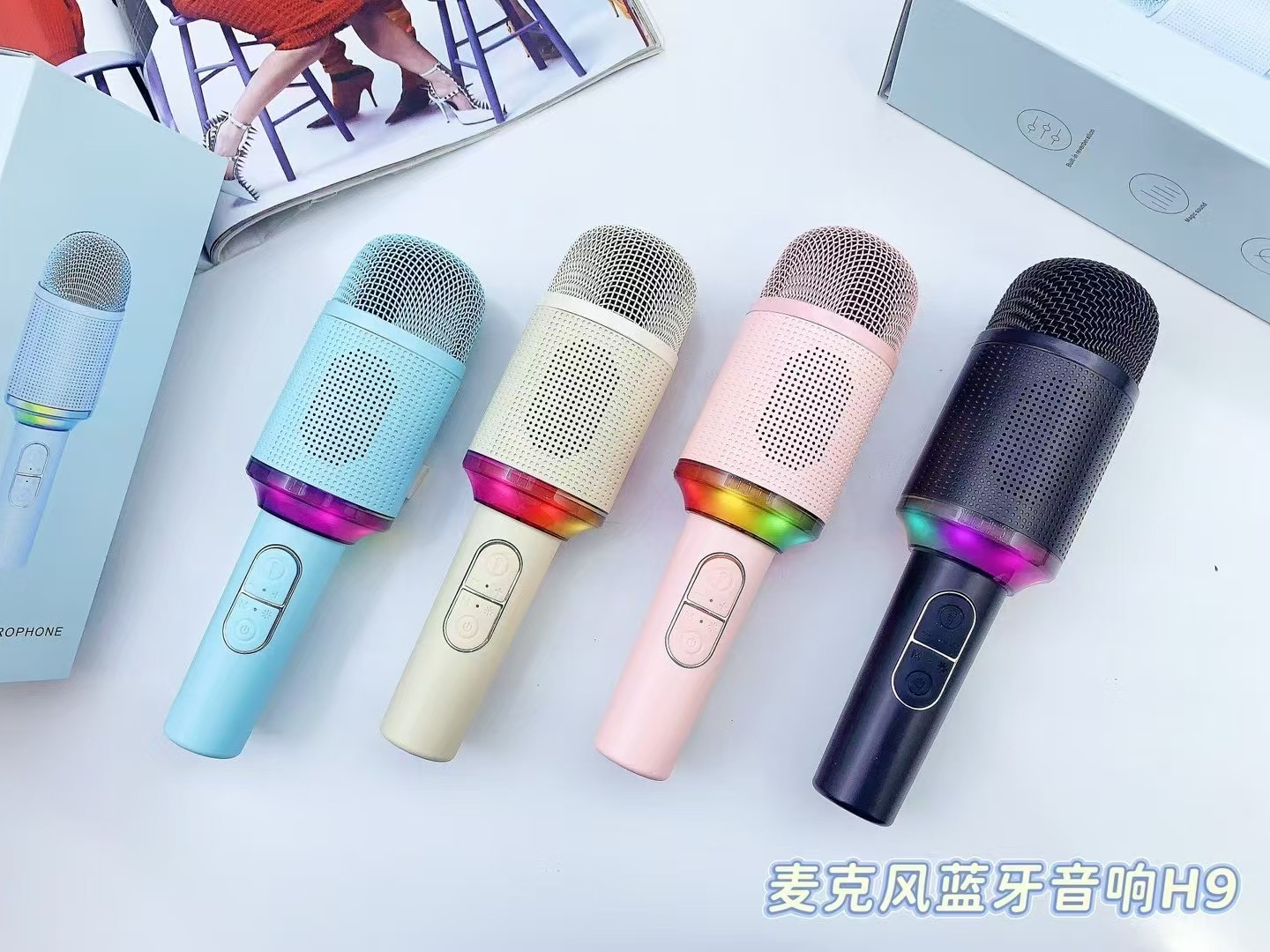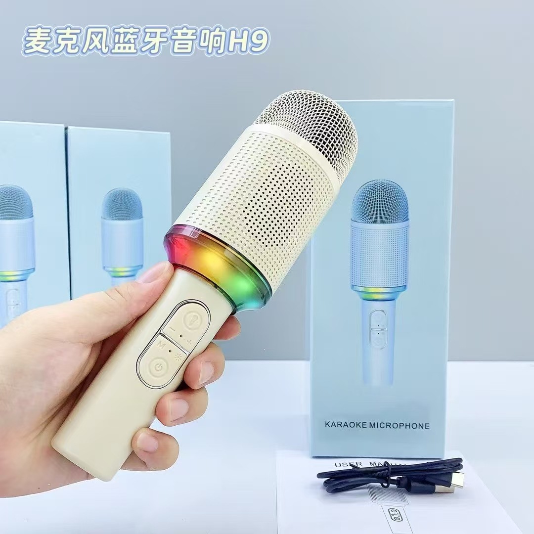 h9 cross-border new arrival handheld microphone bluetooth speaker all-in-one wireless ktv microphone with colorful light gift