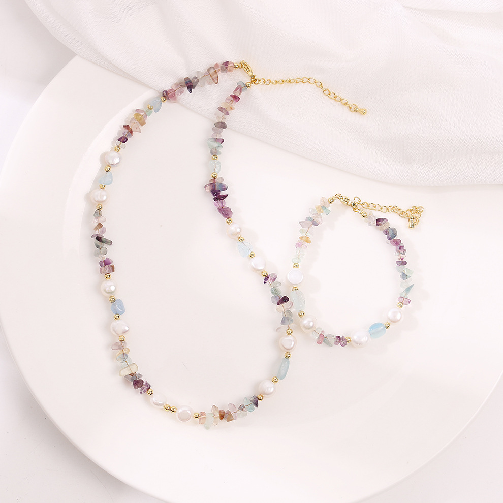 colorful crystal aquamarine pearl necklace
