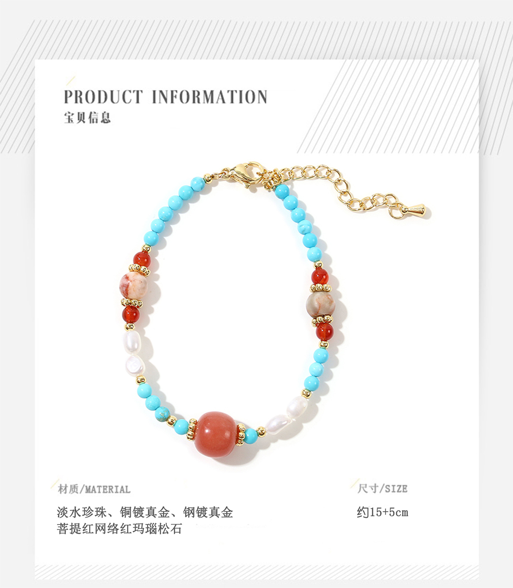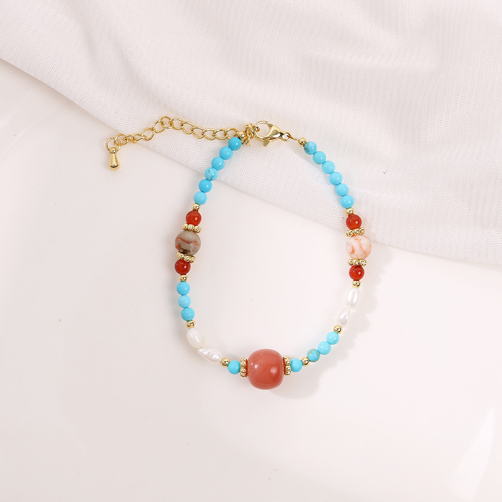bodhi red network red agate turquoise pearl bracelet