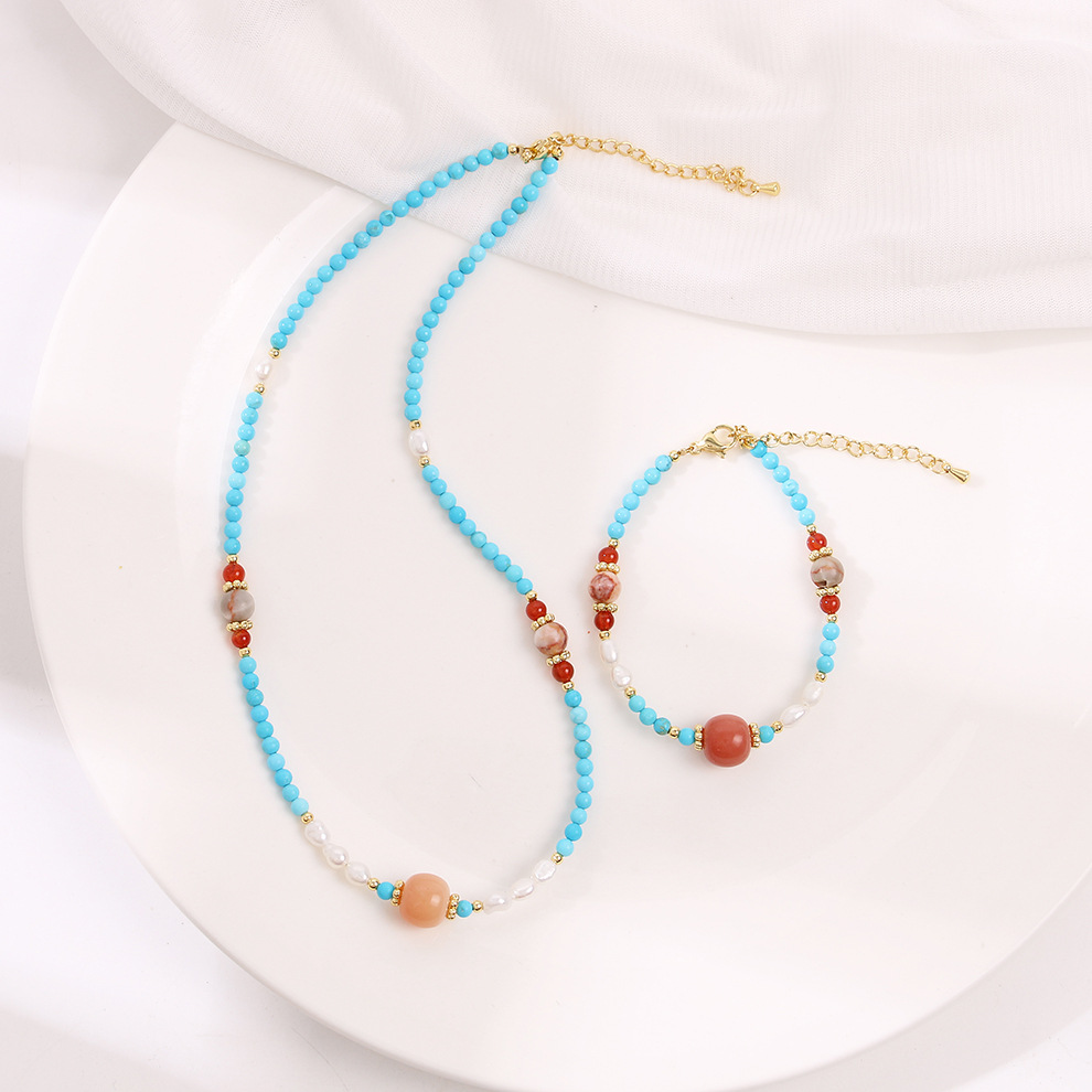 bodhi red network red agate turquoise pearl necklace