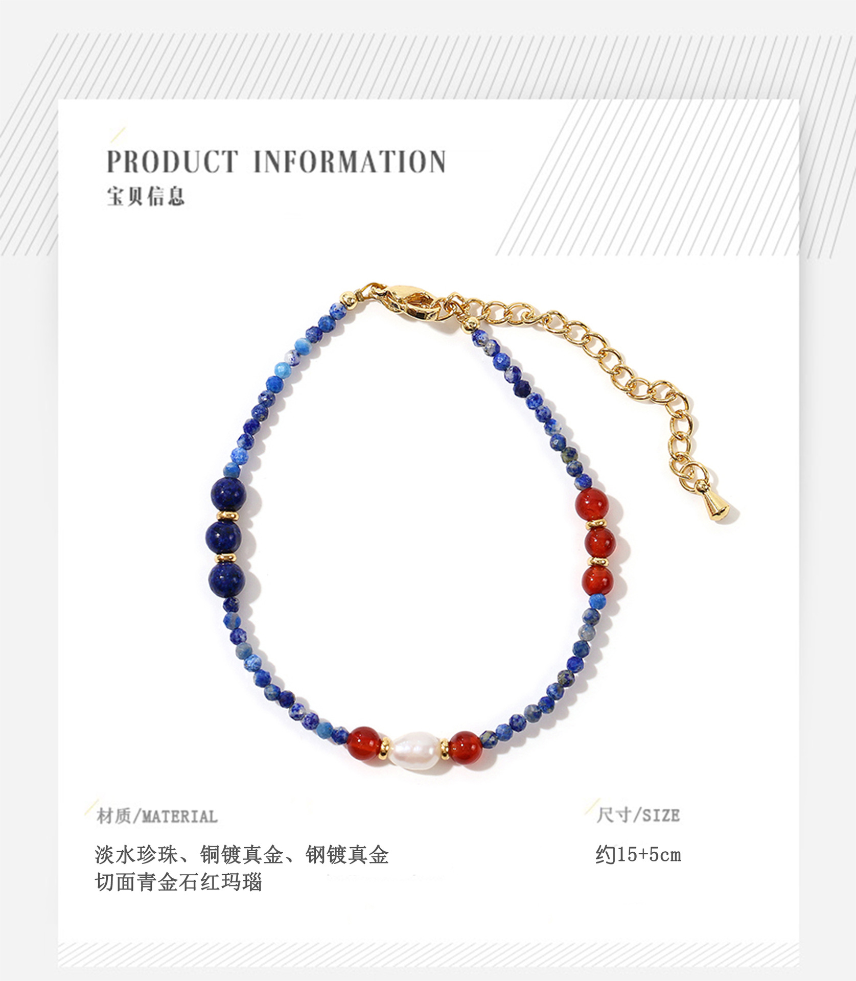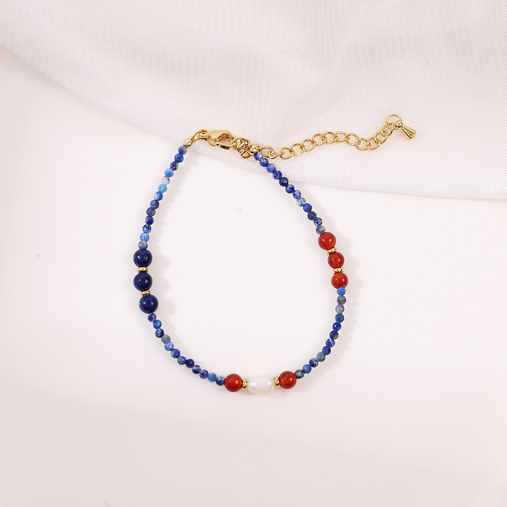 faceted lapis lazuli red agate pearl bracelet