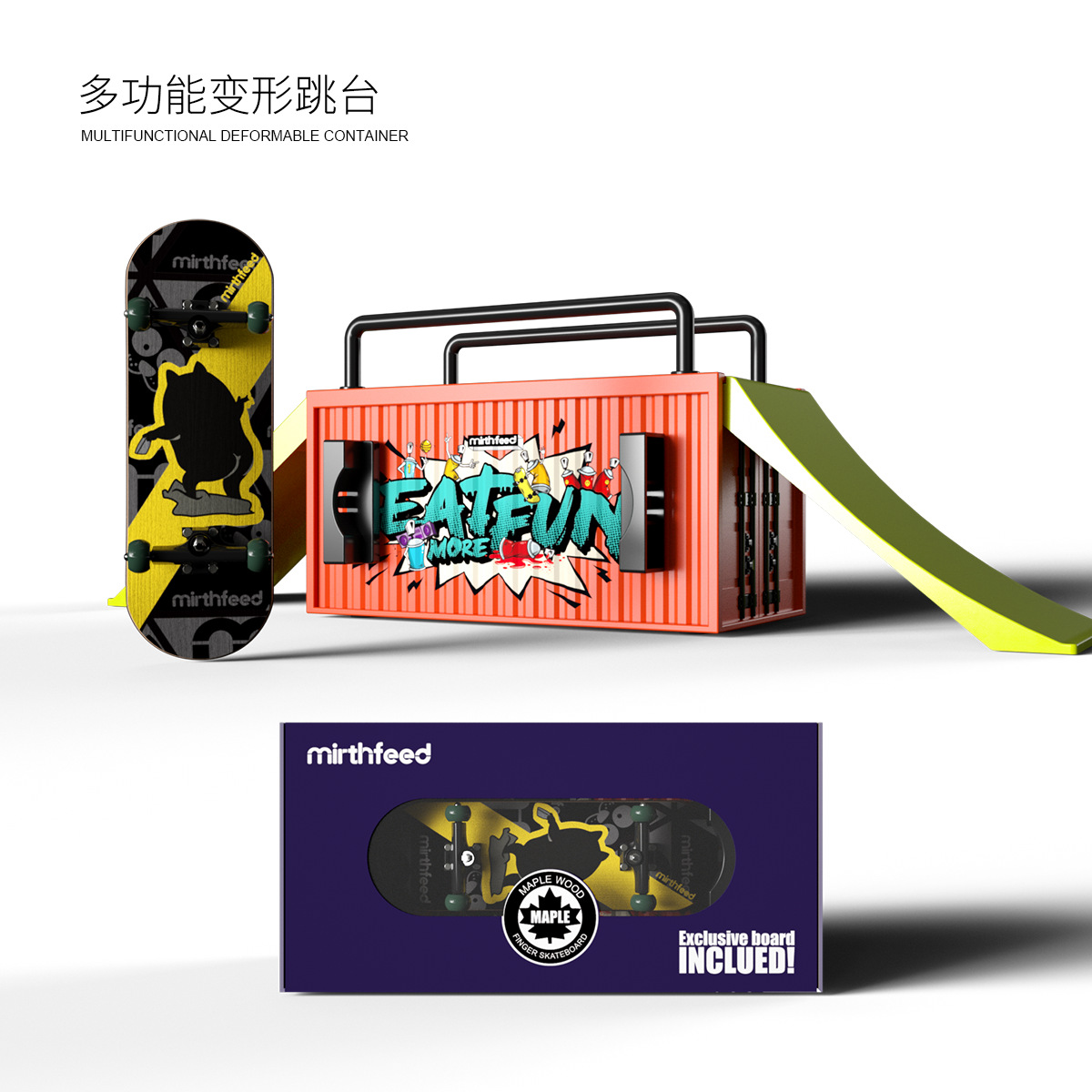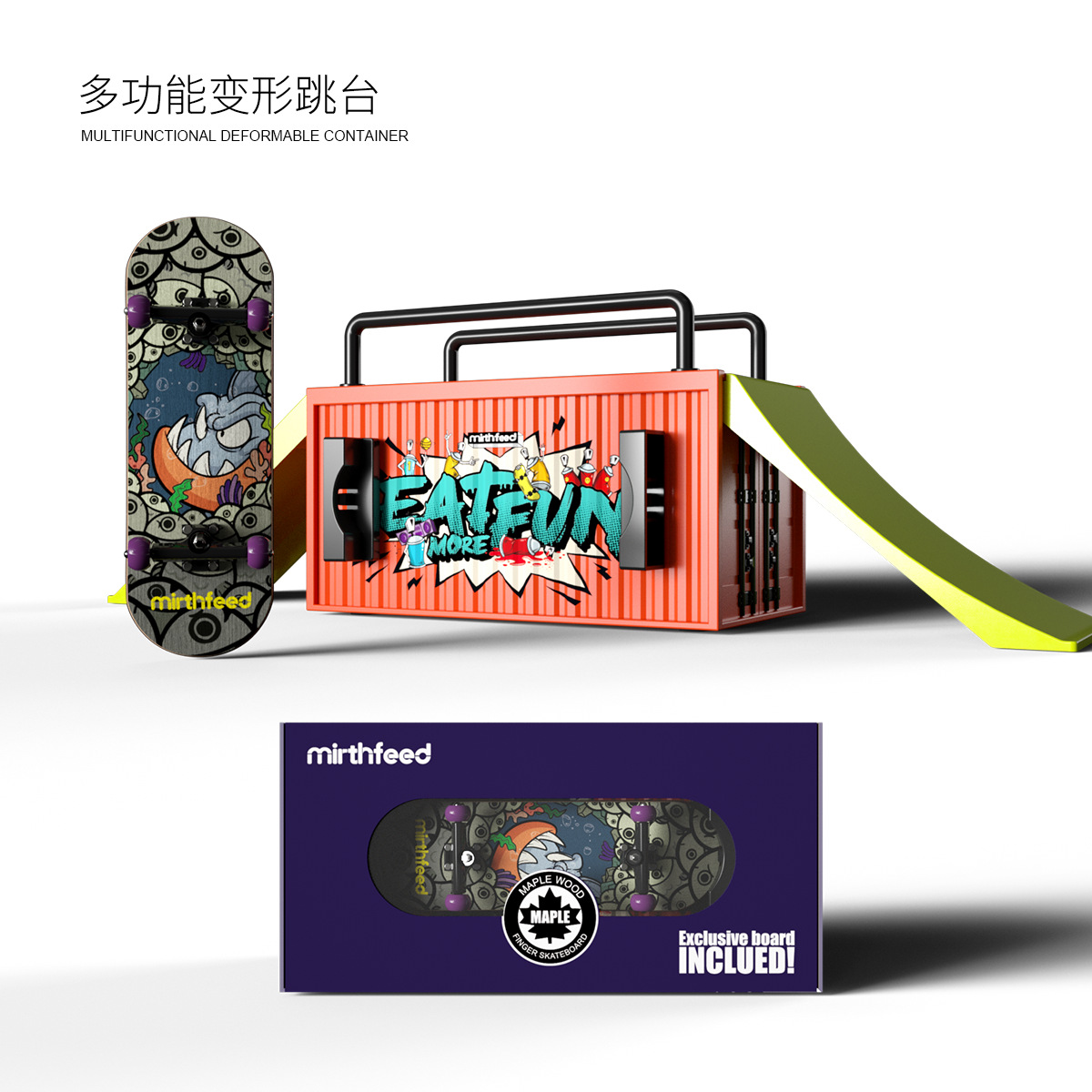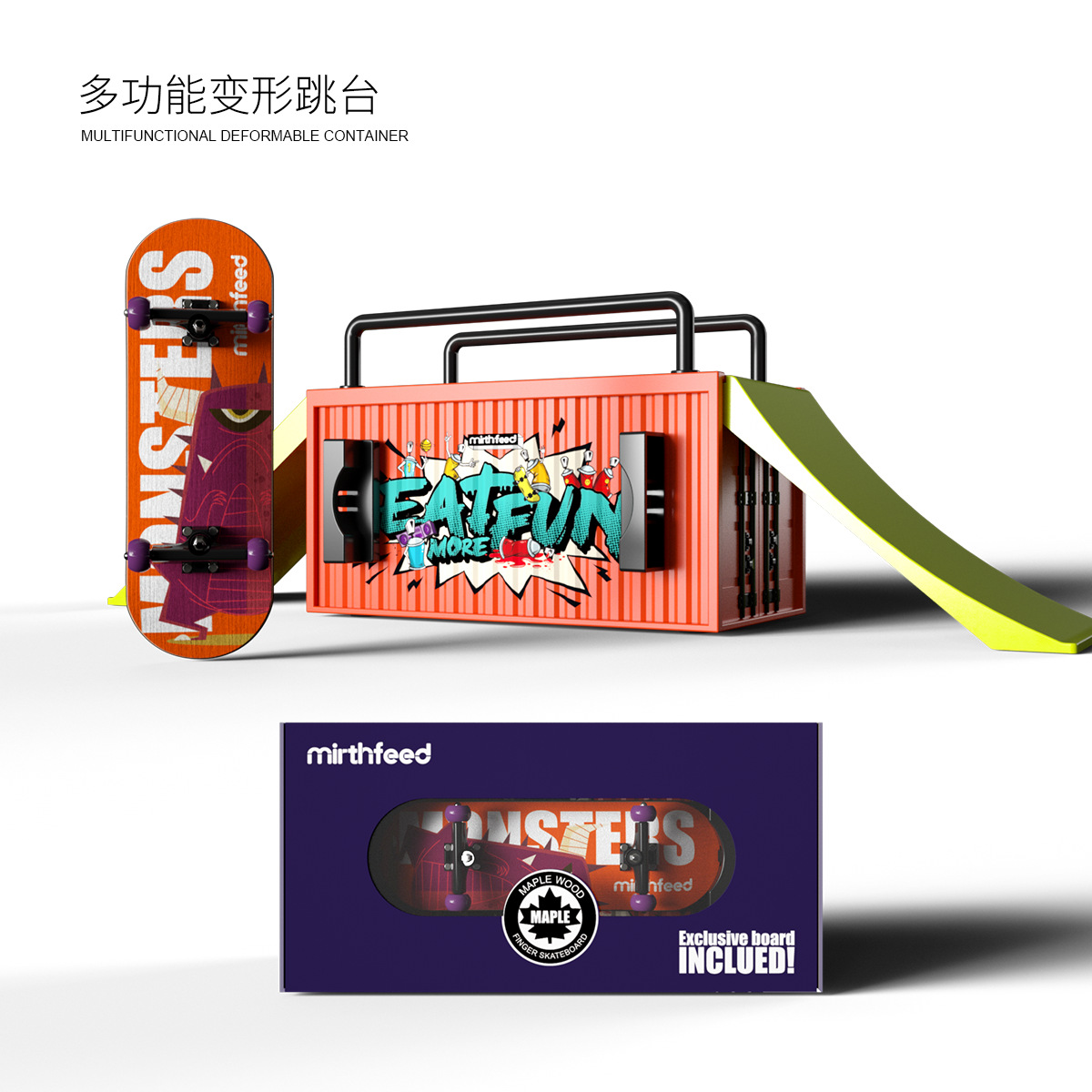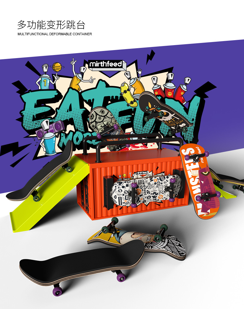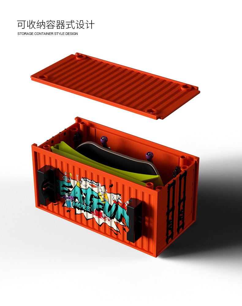 container set + monster pattern skateboard