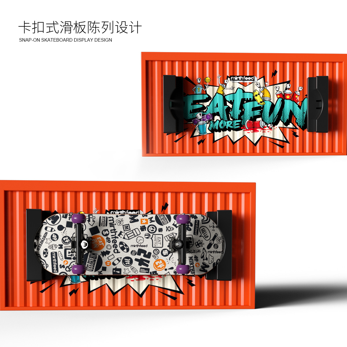 container set + logo pattern skateboard
