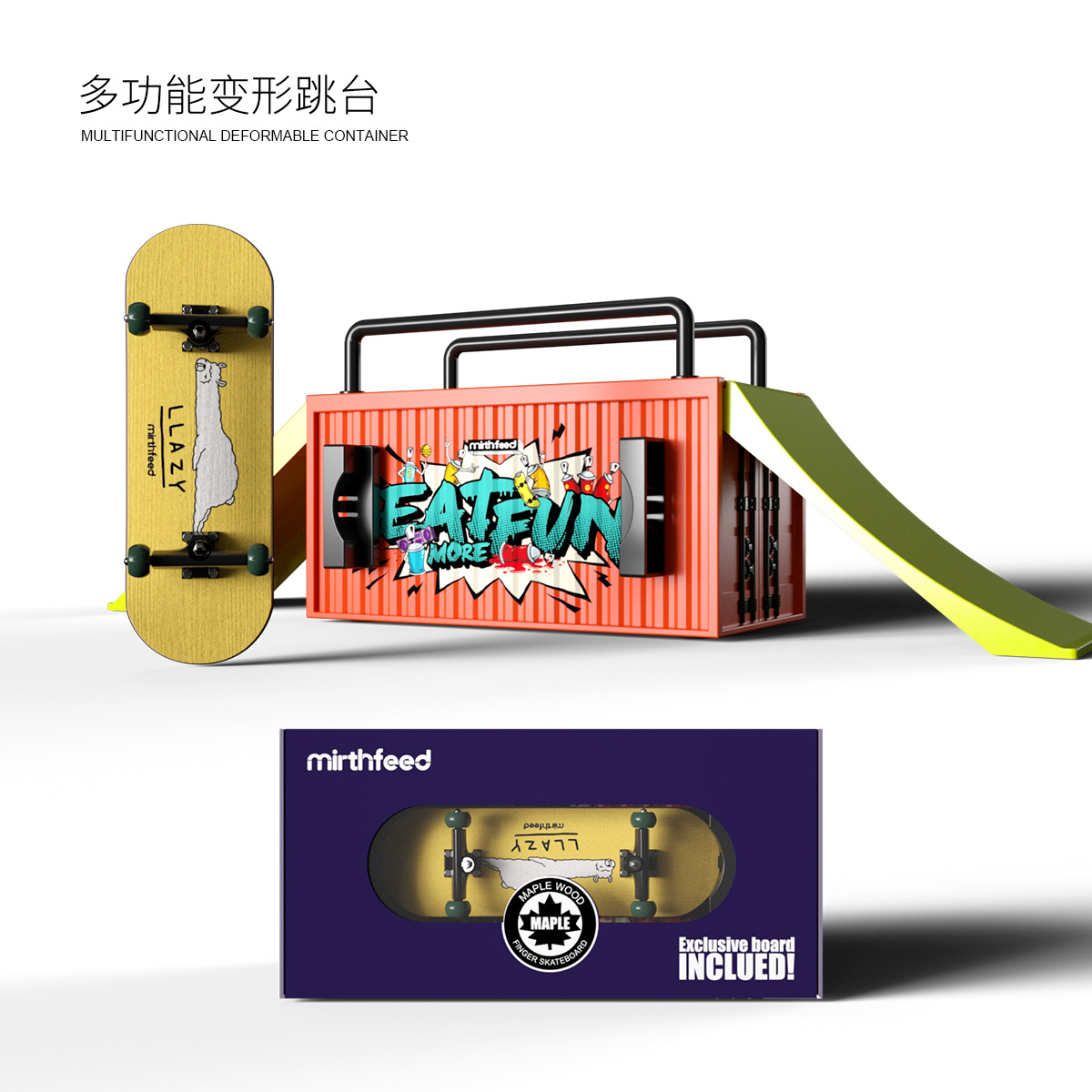 container set + alpaca pattern skateboard