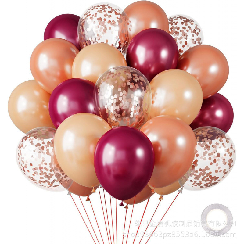 30pcs wine red champagne gold balloon set free ribbon