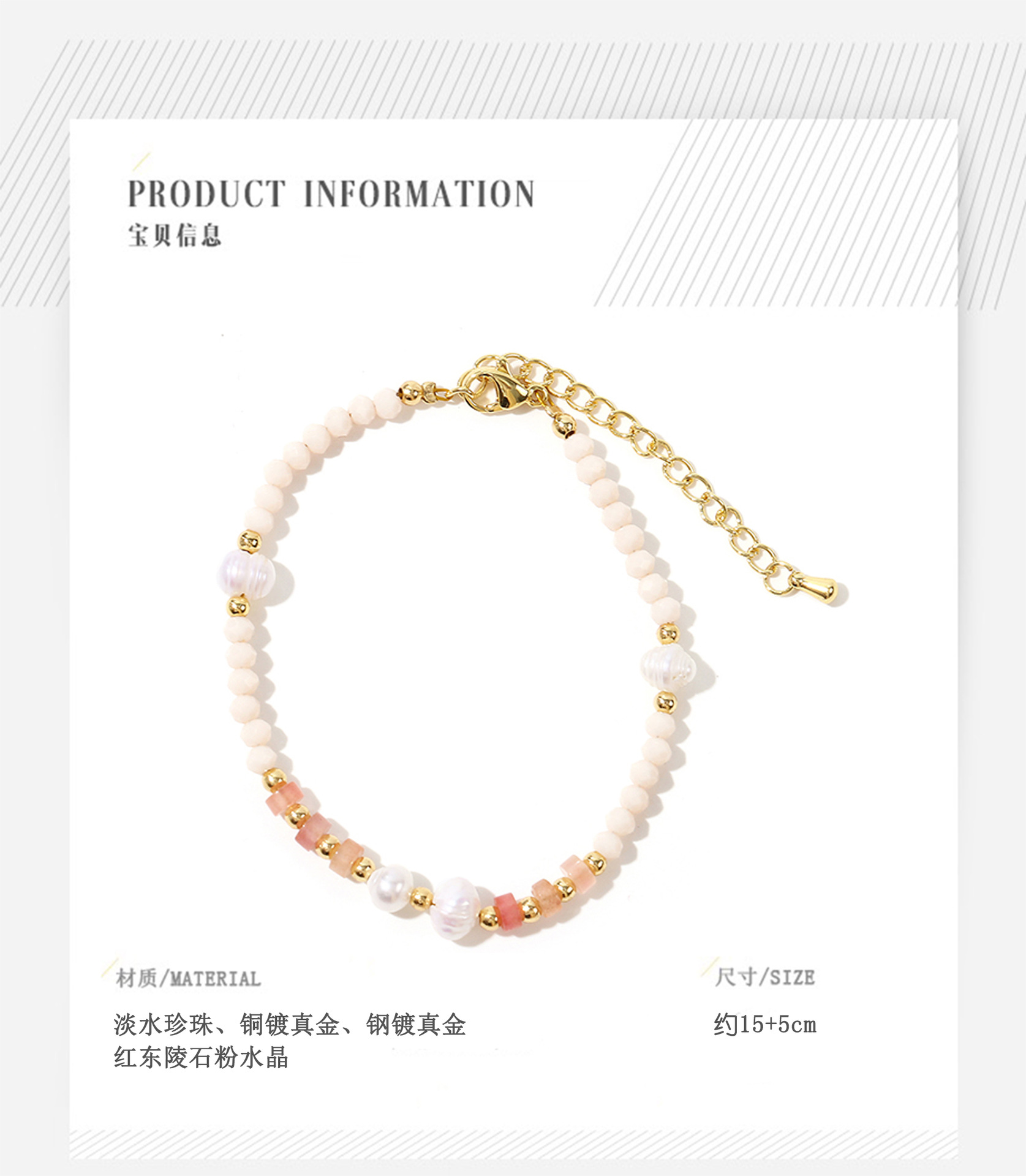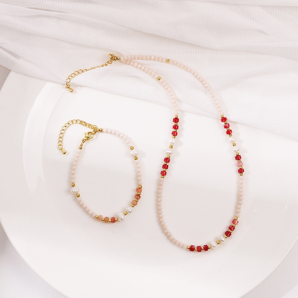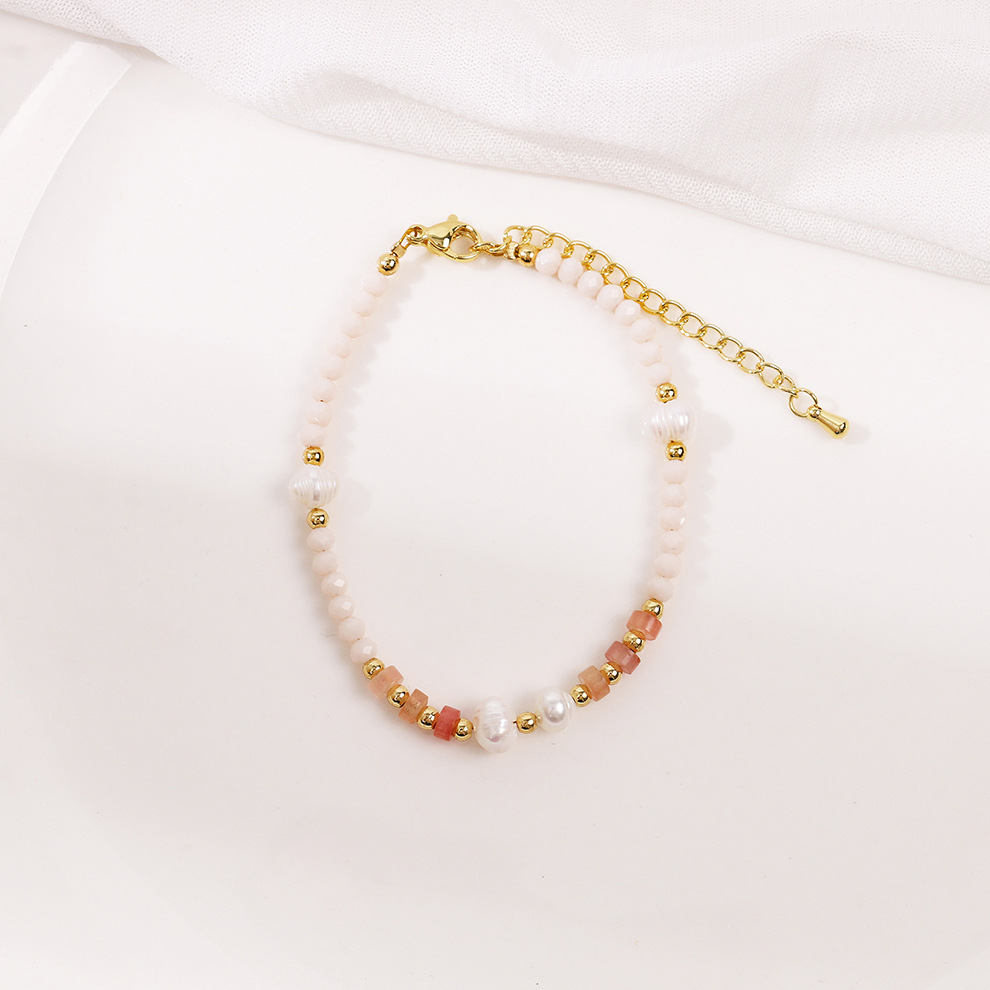 red dongling stone powder crystal pearl bracelet