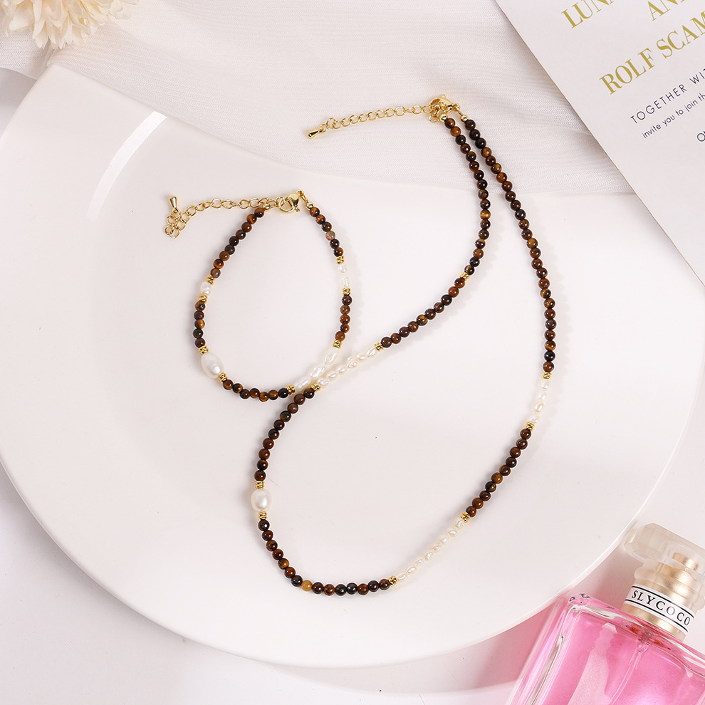 tigereye pearl necklace