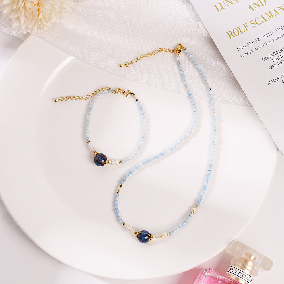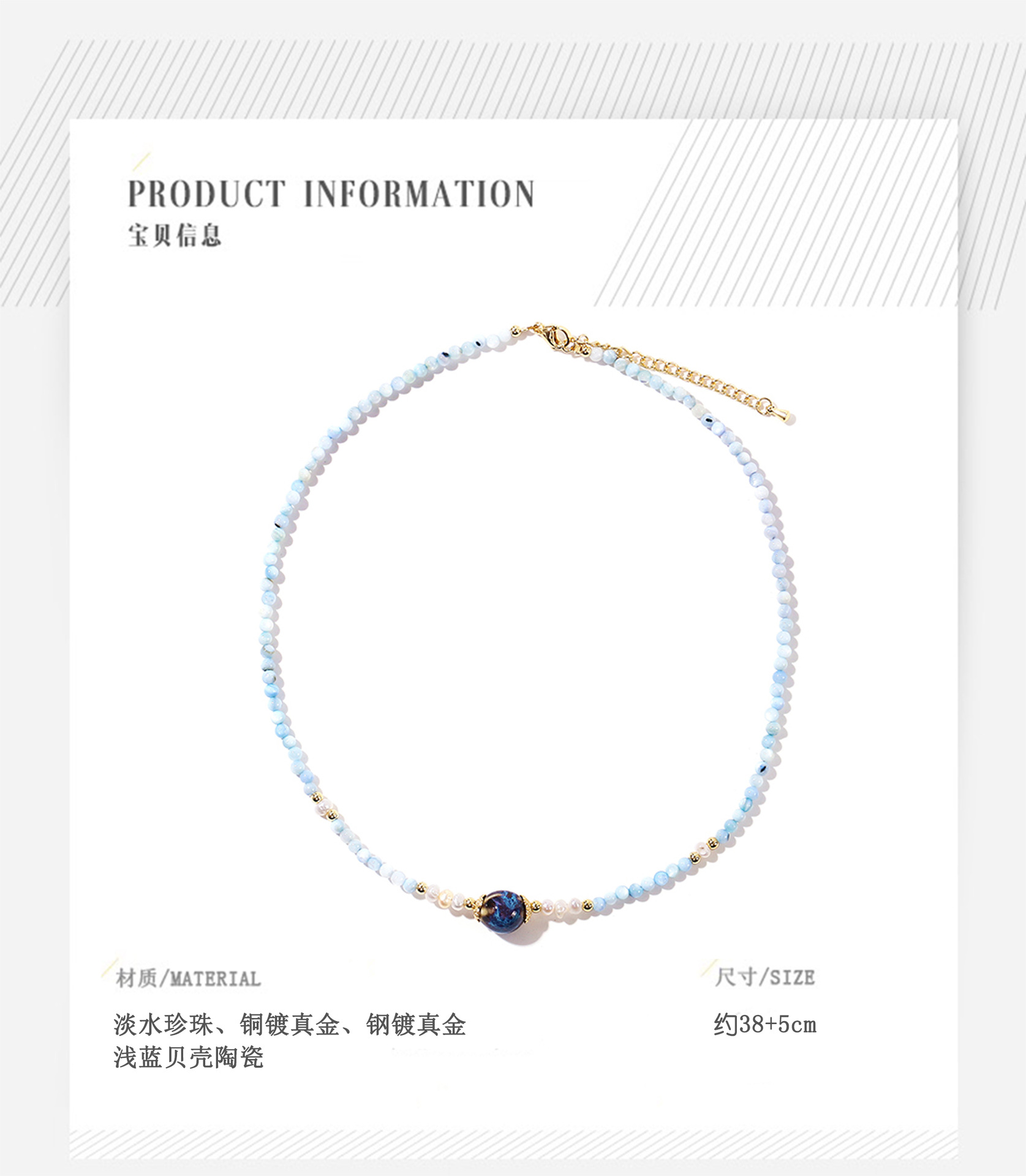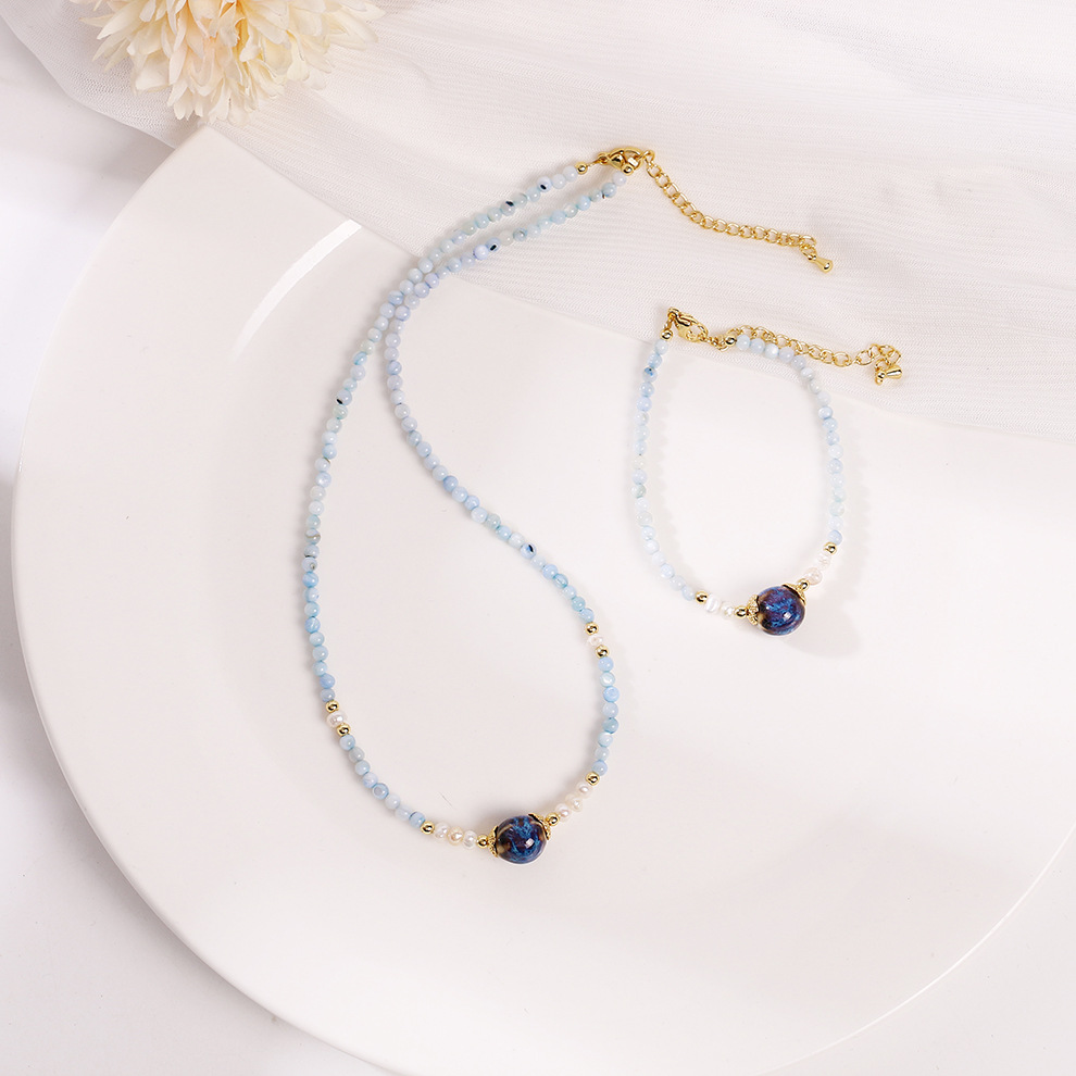 light blue shell ceramic pearl necklace