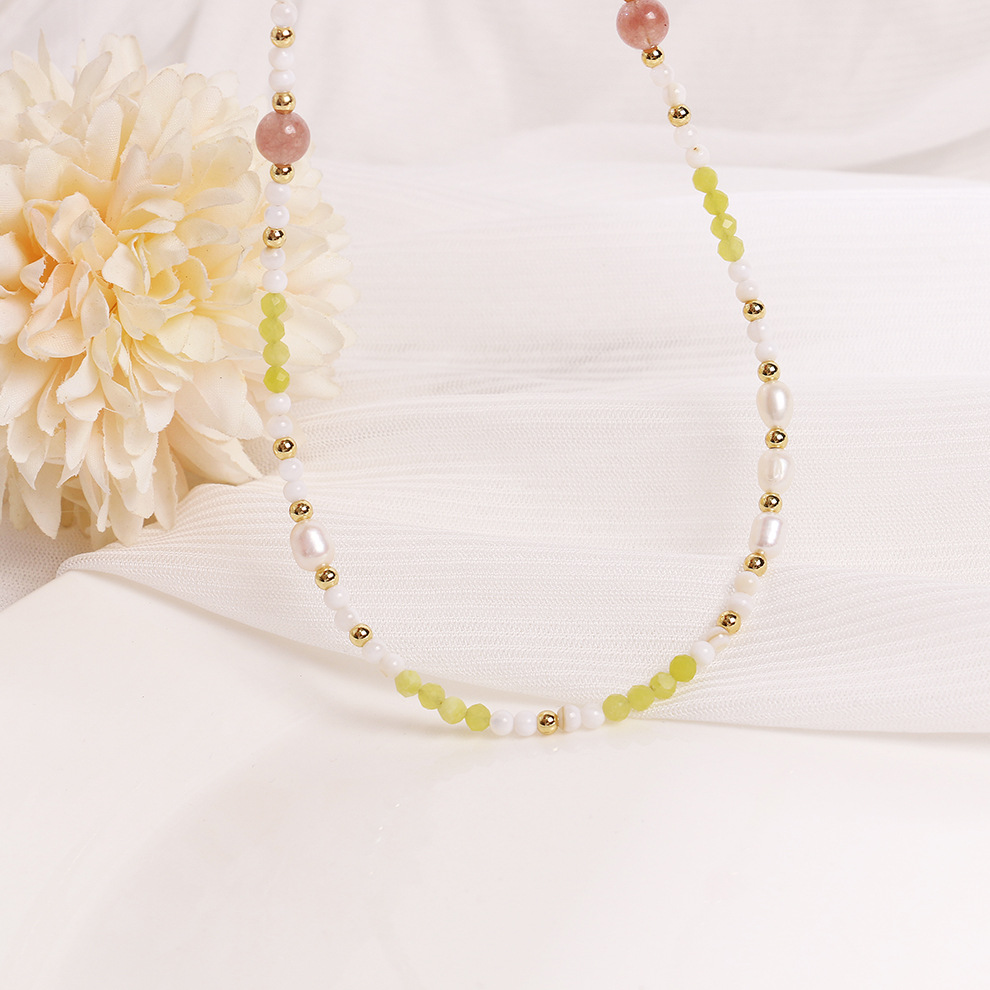 topaz deep sea shell peach red agate pearl necklace