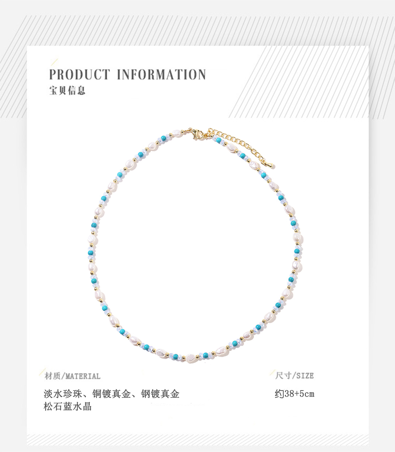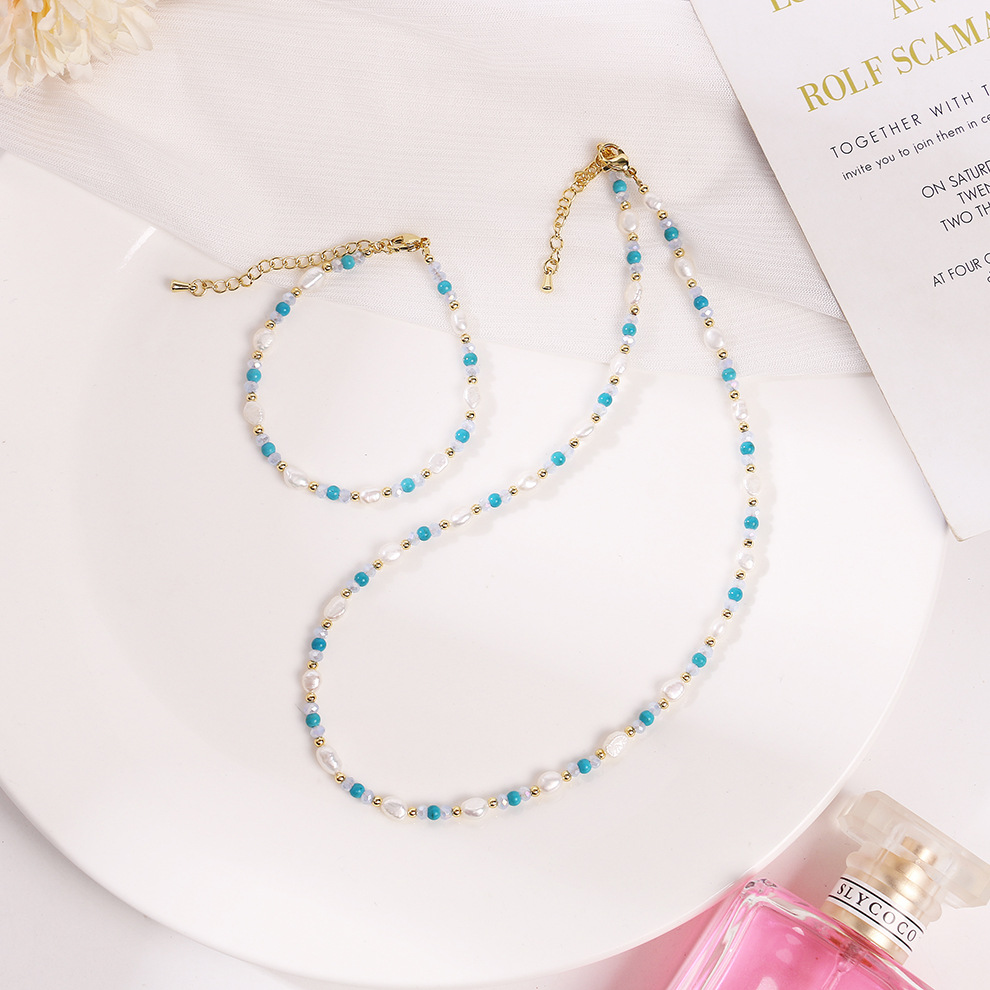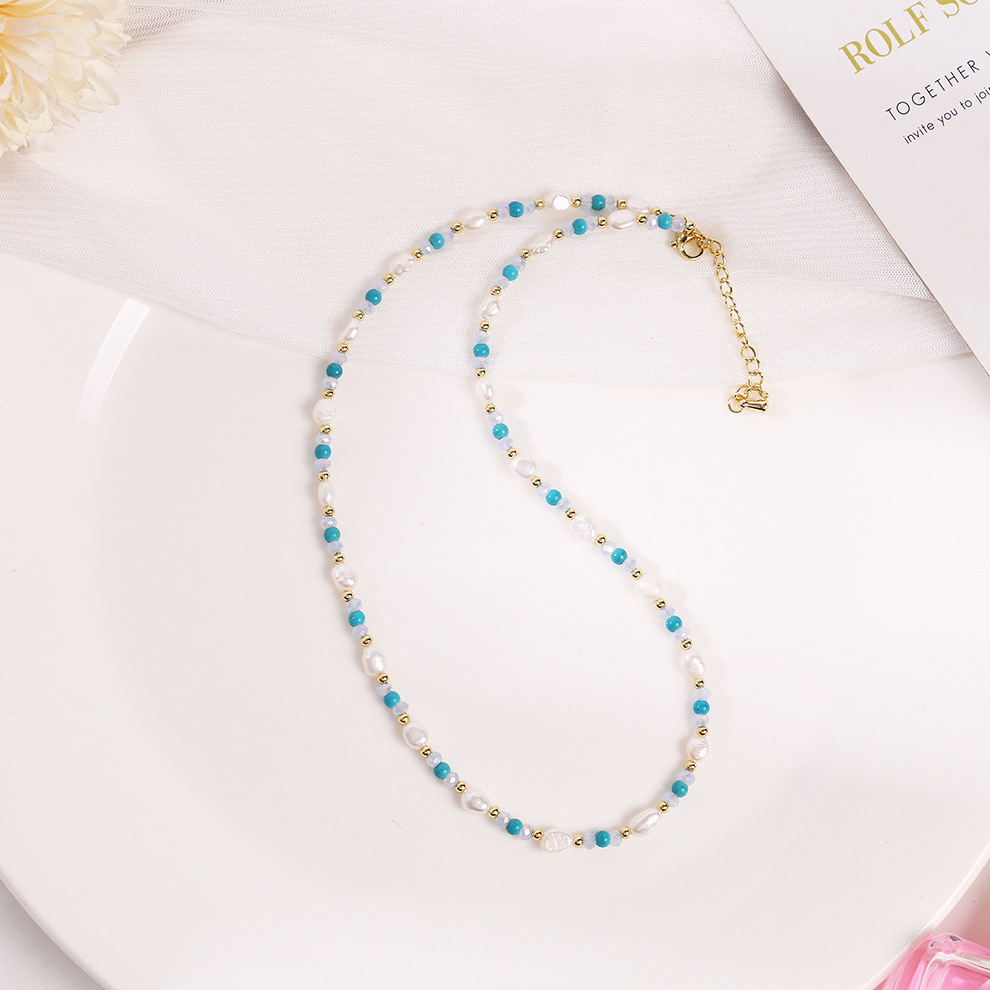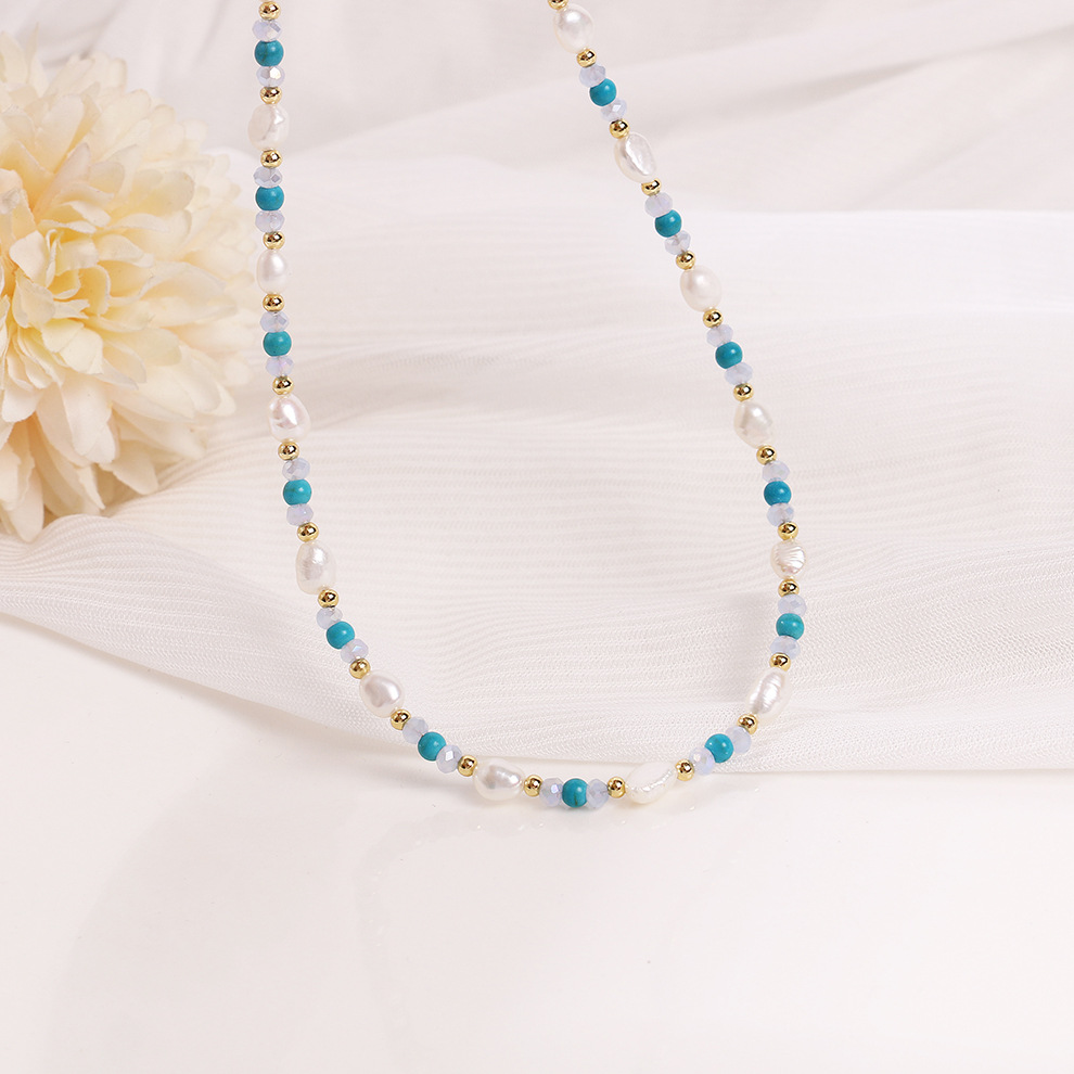 turquoise blue crystal pearl necklace