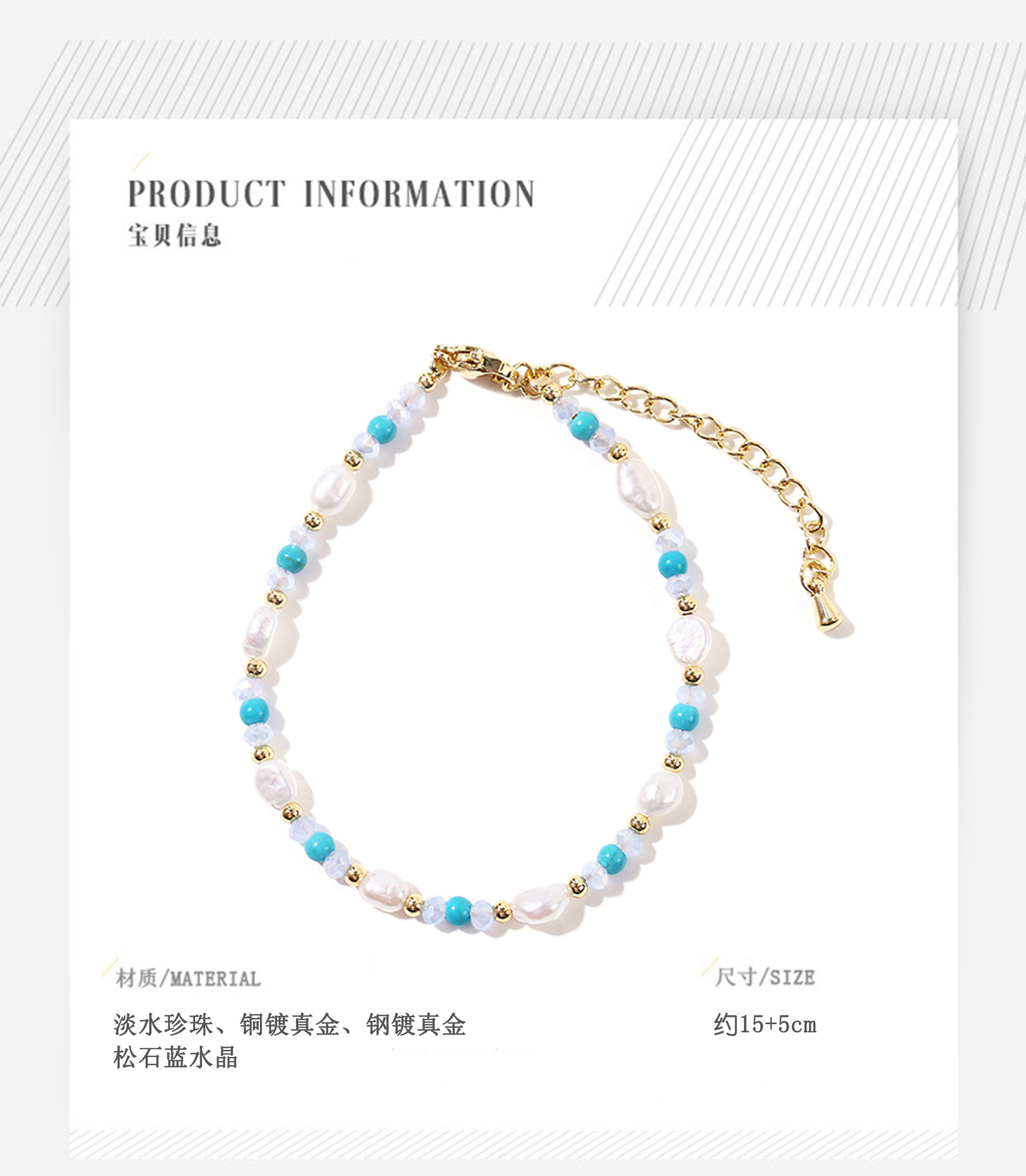 turquoise blue crystal pearl bracelet
