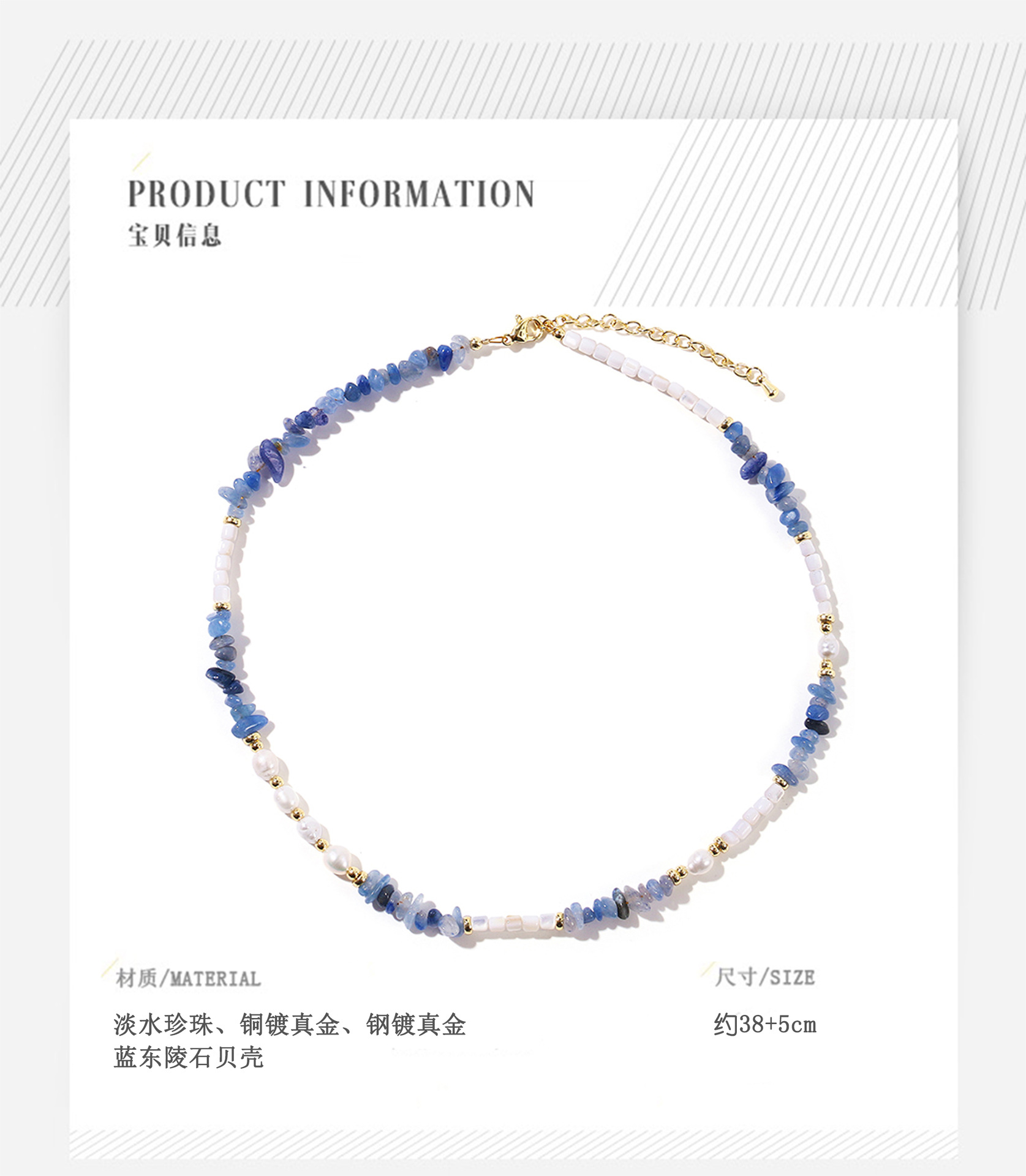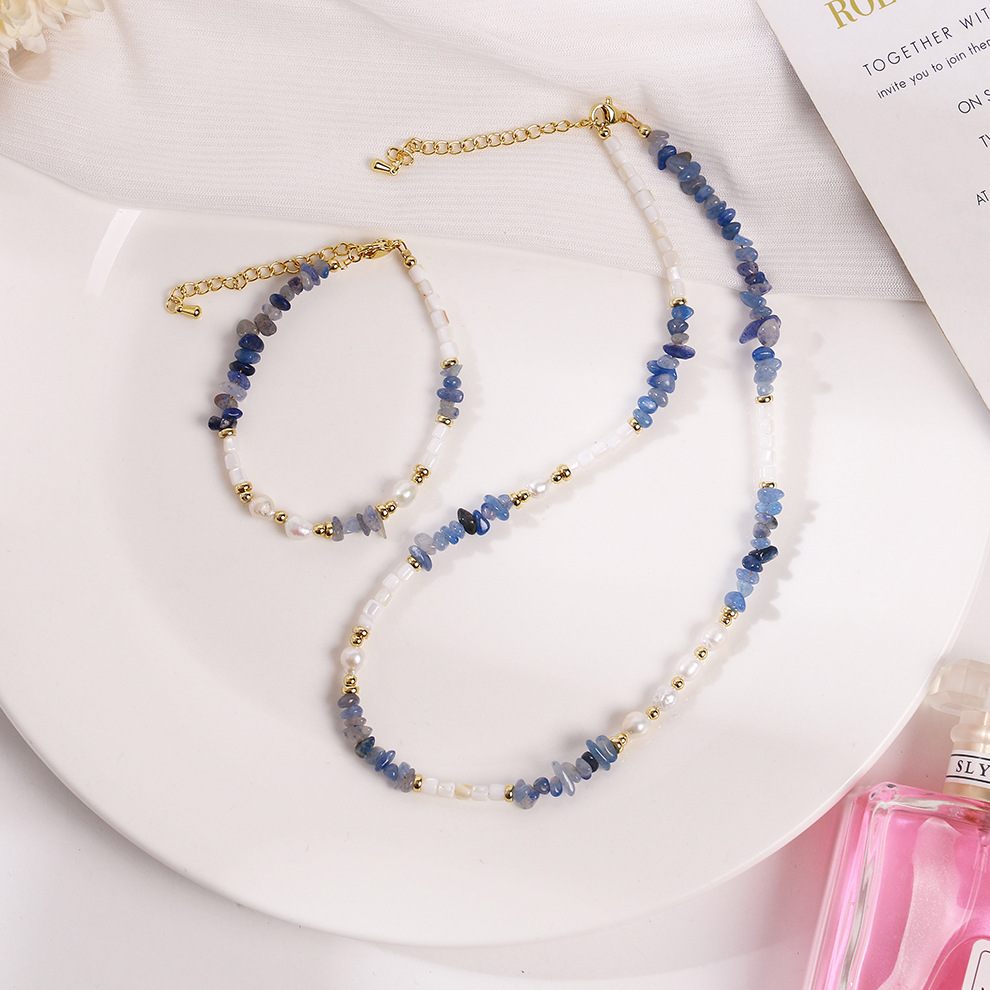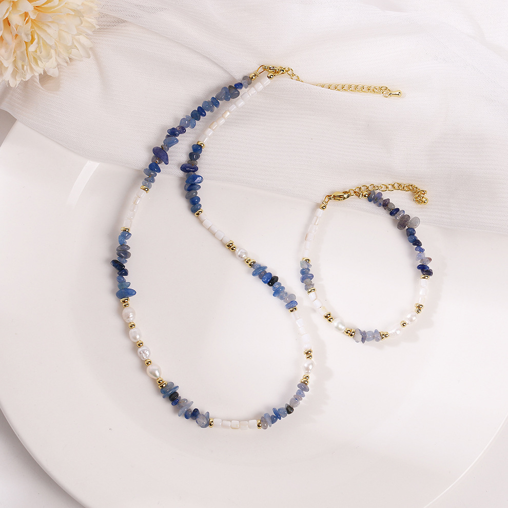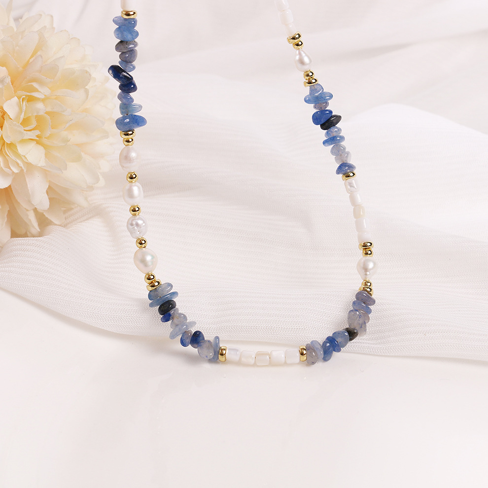 blue dongling stone shell pearl necklace