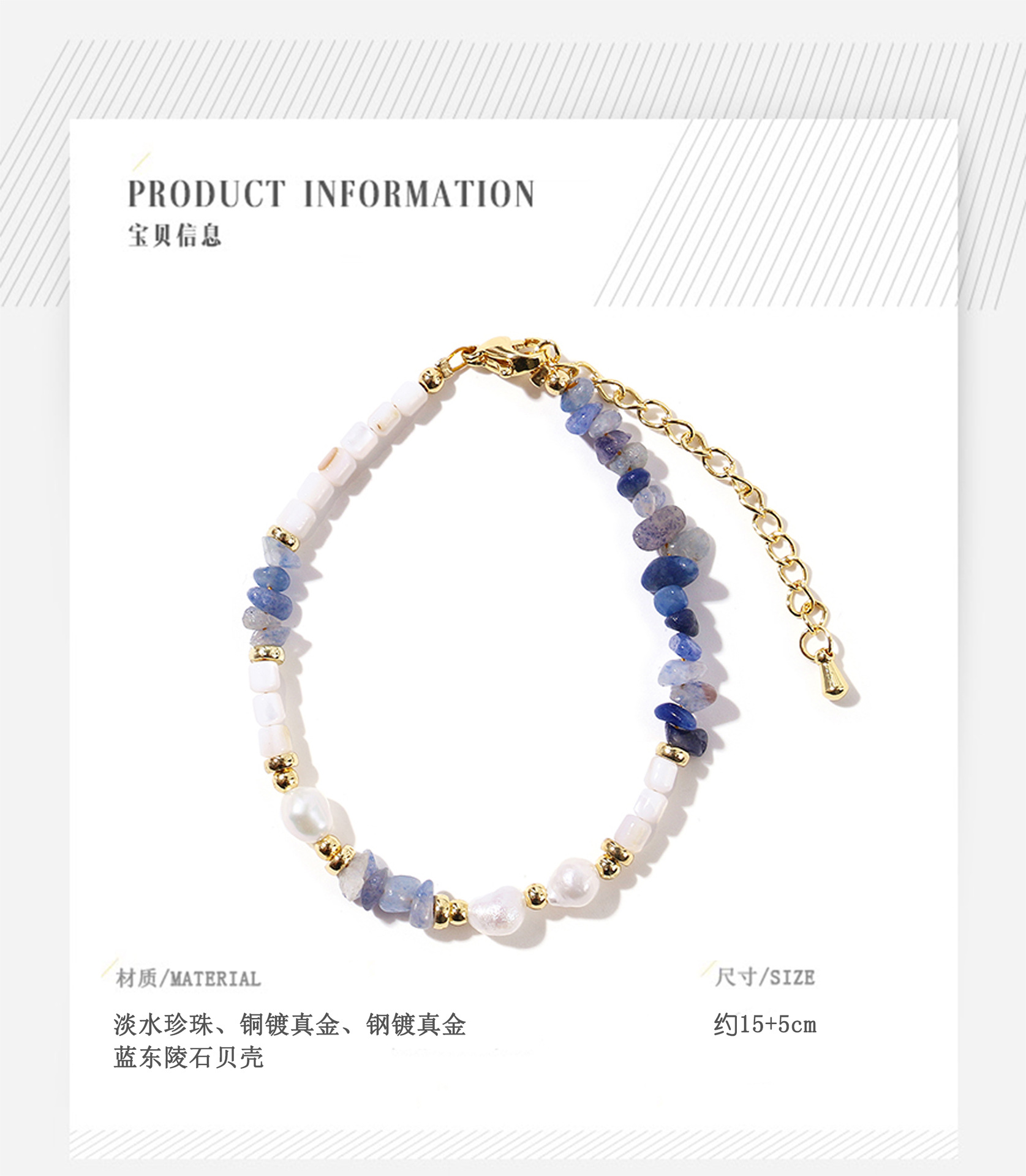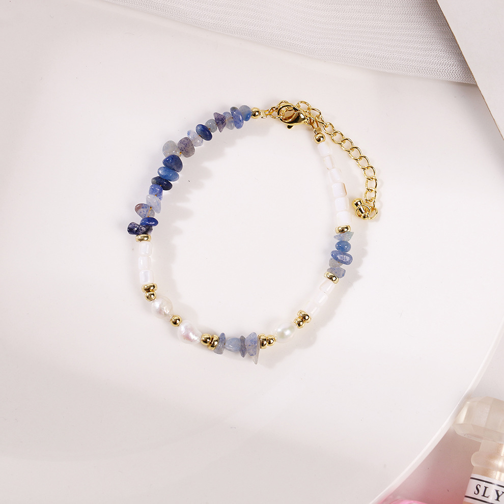 blue dongling stone shell pearl bracelet