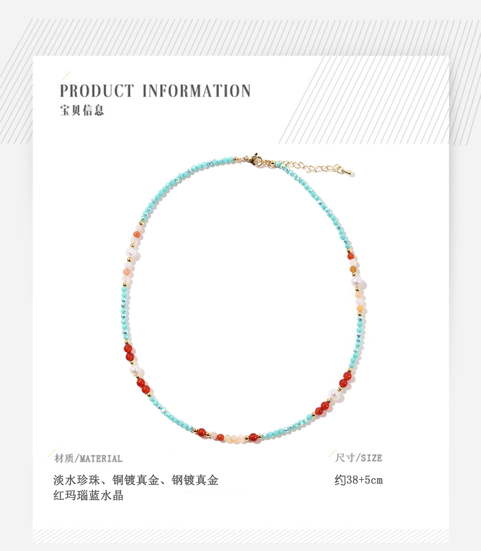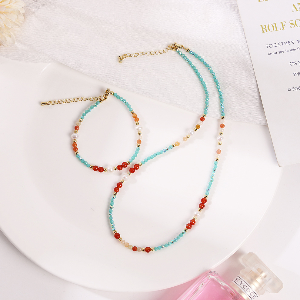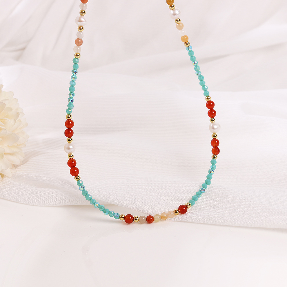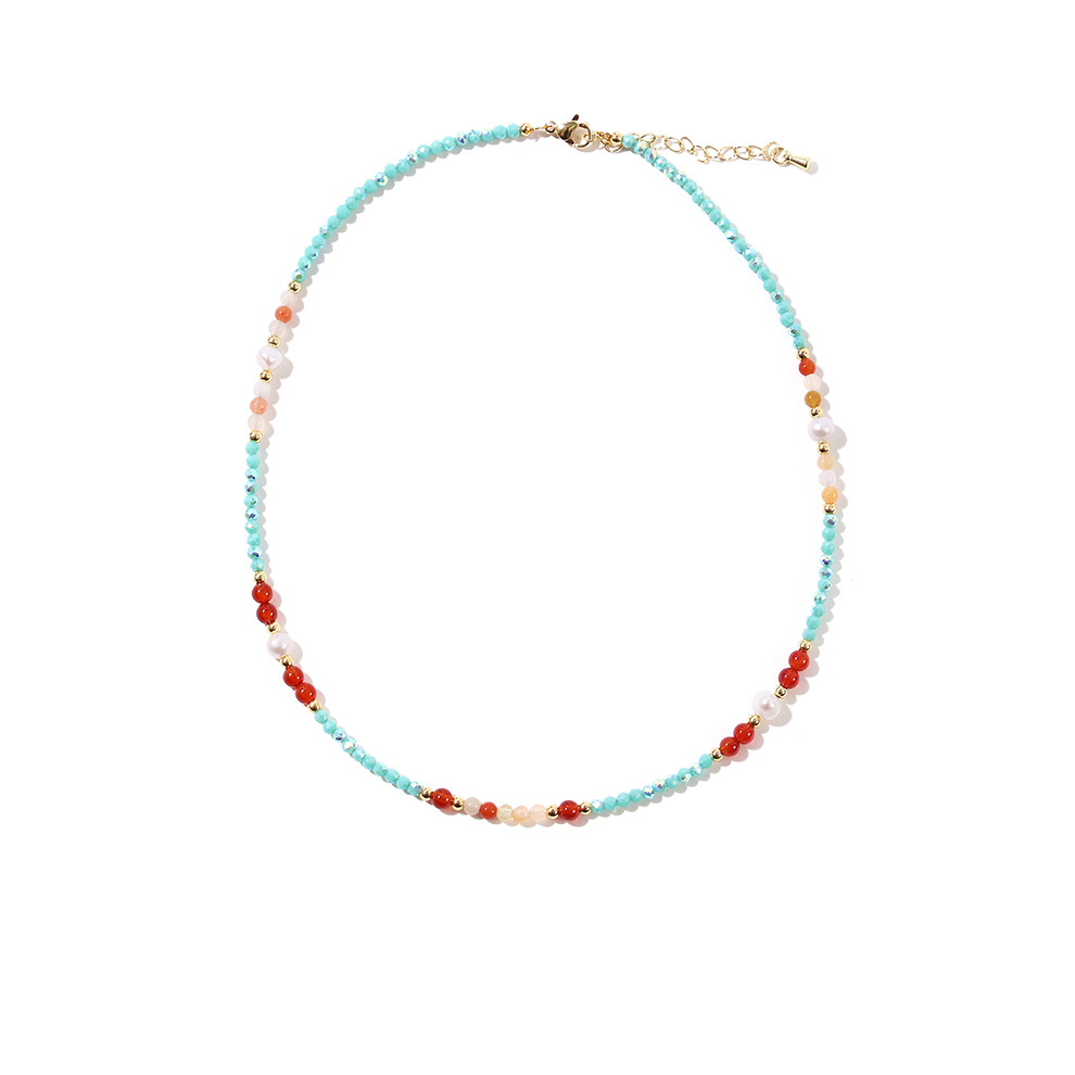 red agate blue crystal pearl necklace