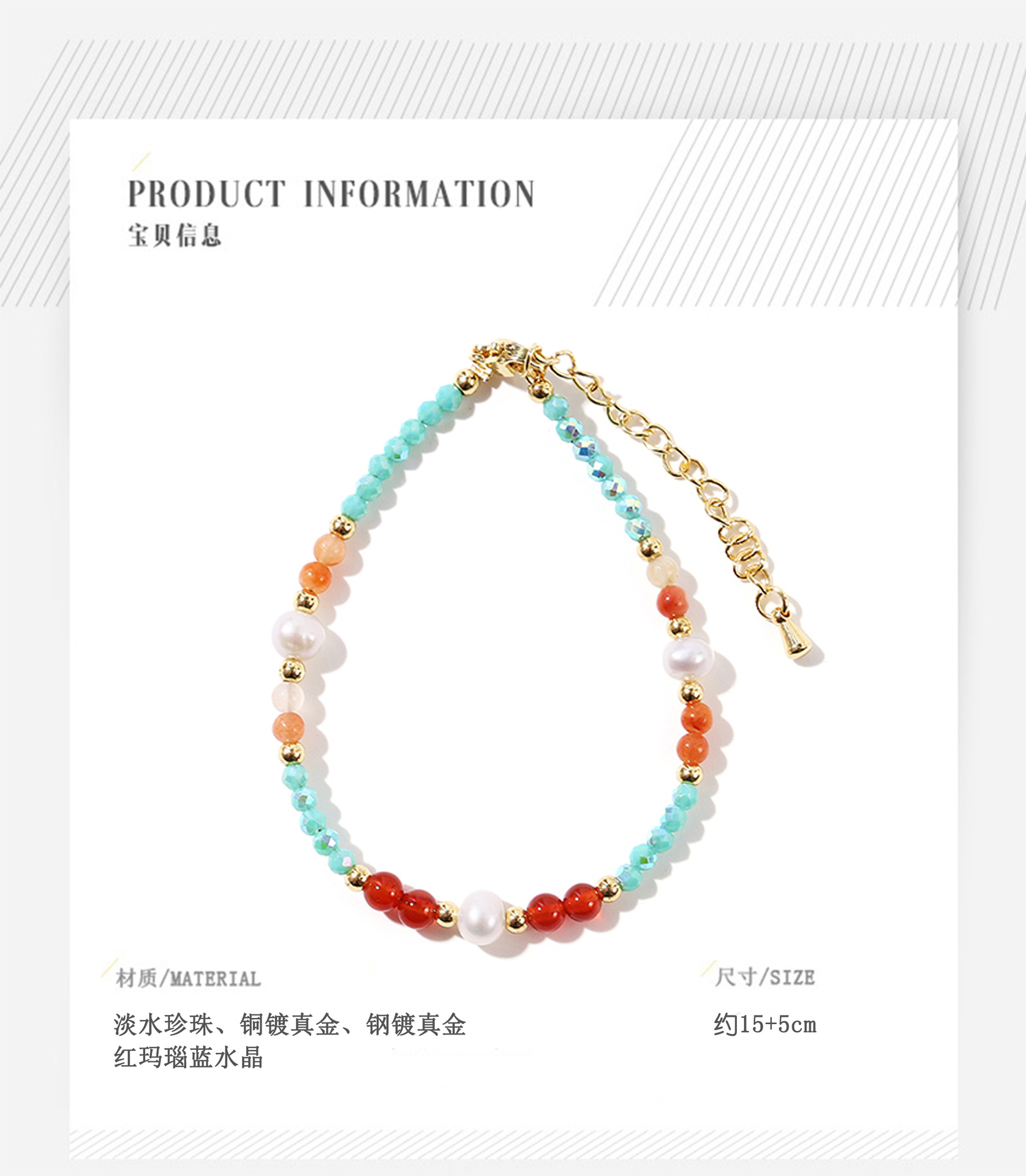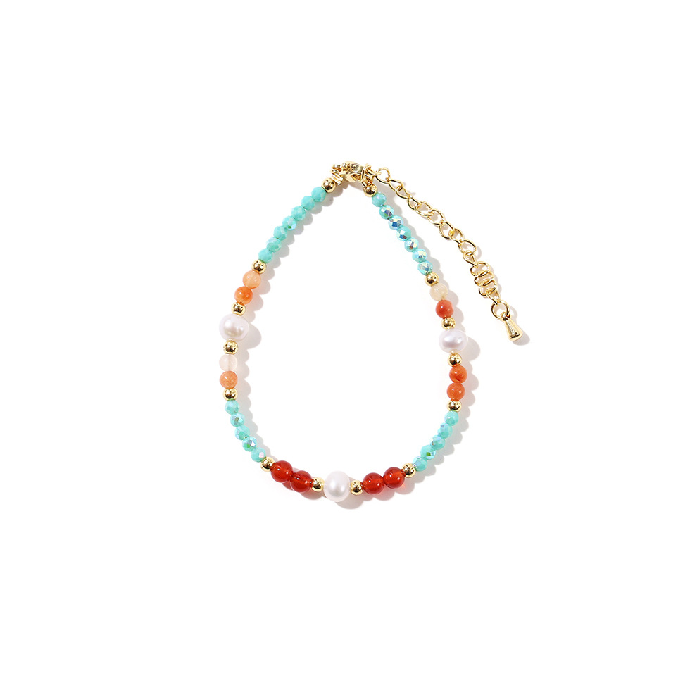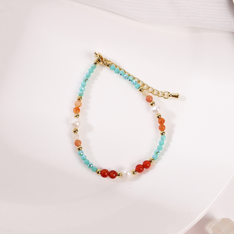 red agate blue crystal pearl bracelet