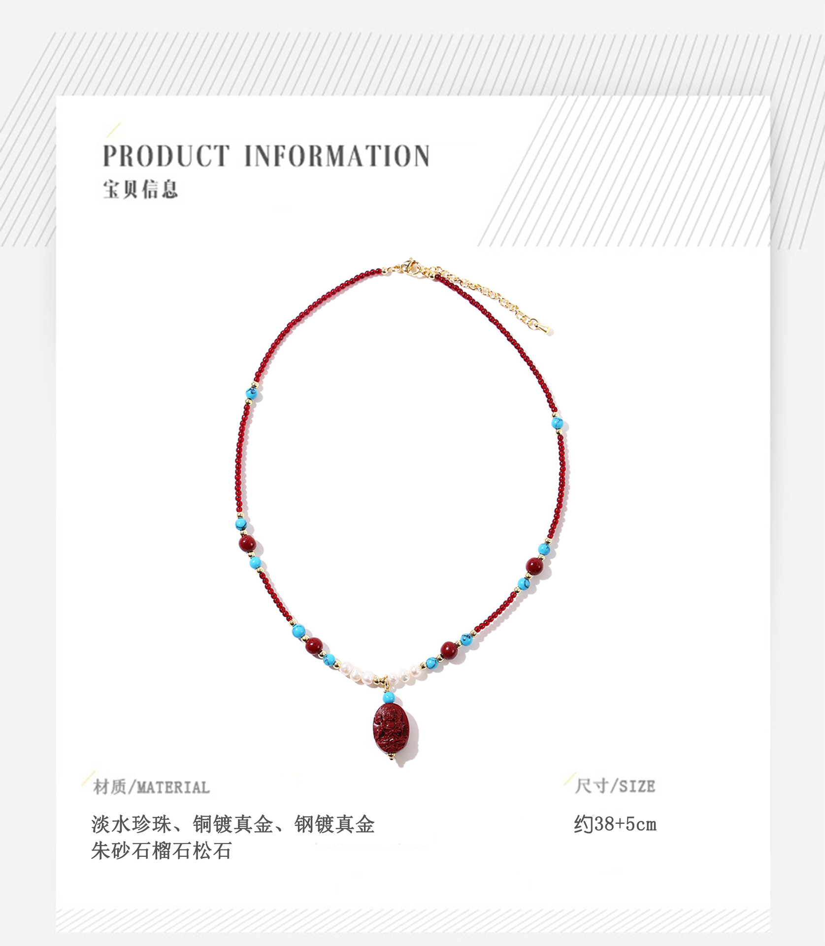 cinnabar garnet turquoise pearl necklace