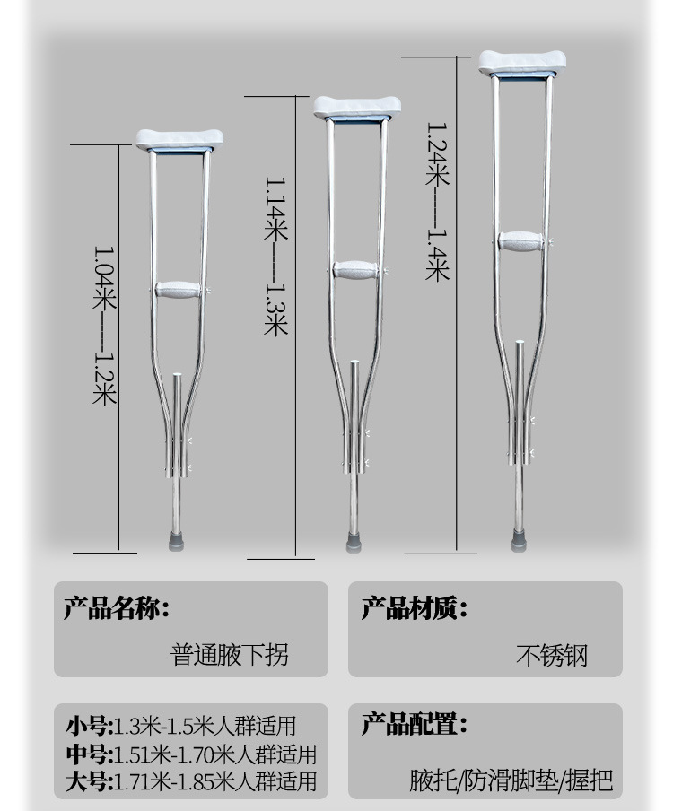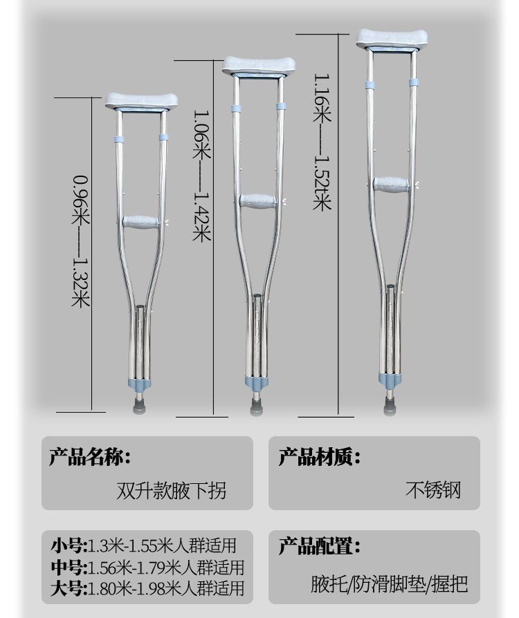 medical crutches young people alpenstock fracture elderly non-slip armpit double crutches walking stick walking aid rehabilitation walking aids