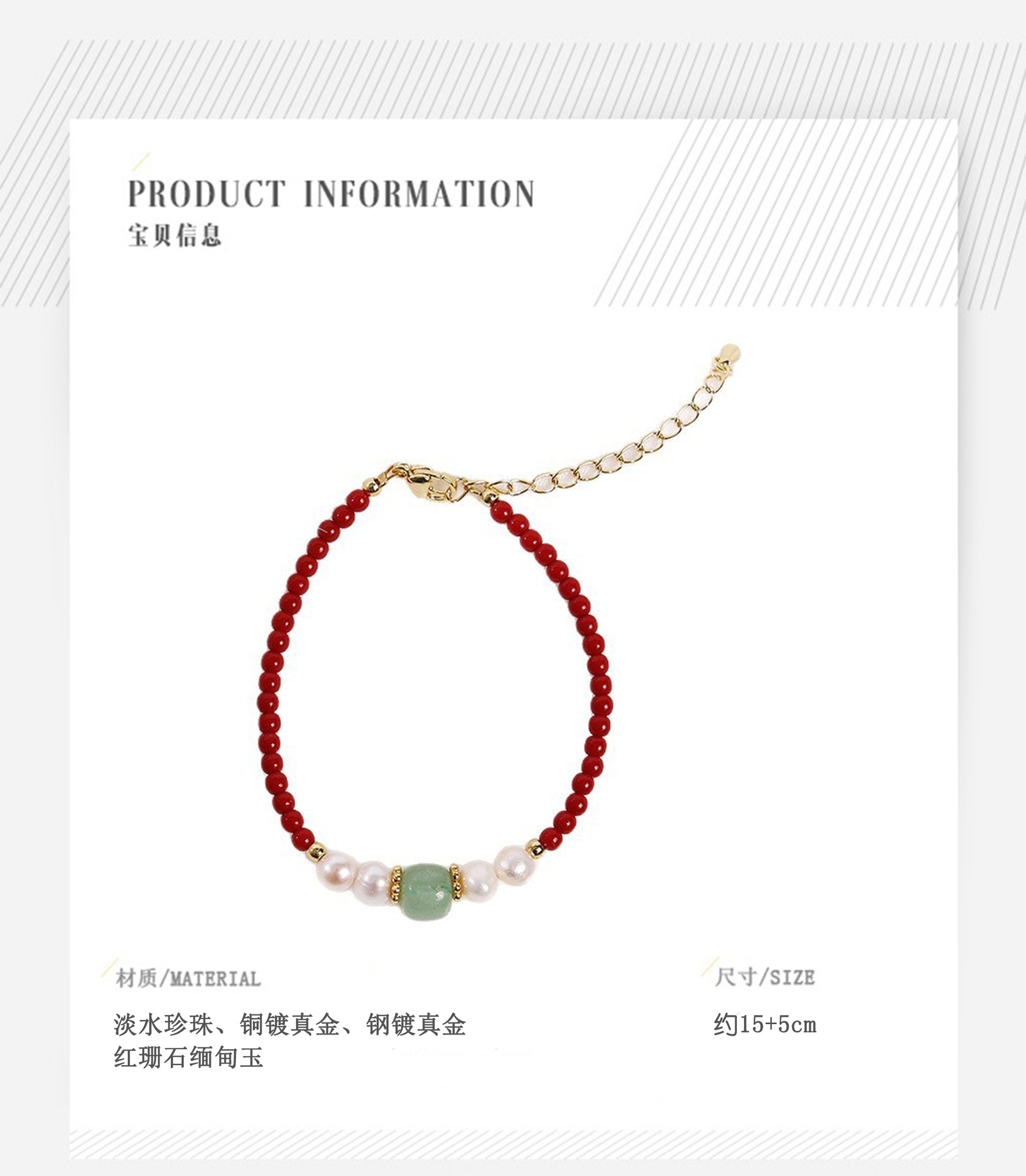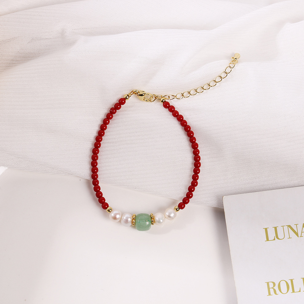 red coral stone burma jade pearl bracelet