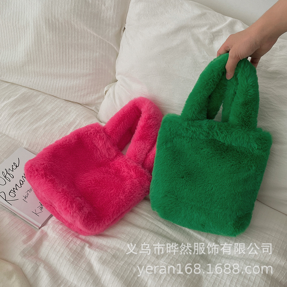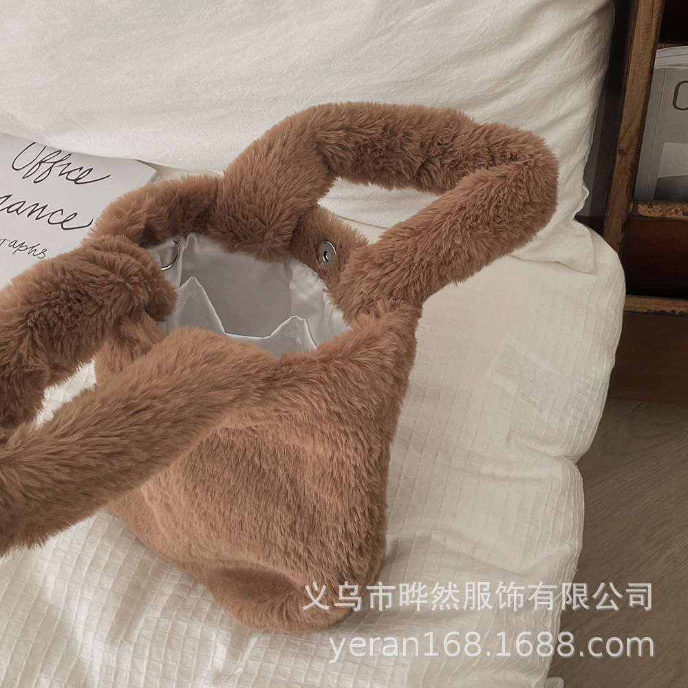 autumn and winter new children's plush pouches cute monochrome mini mobile phone coin purse girls' hand bag shoulder bag