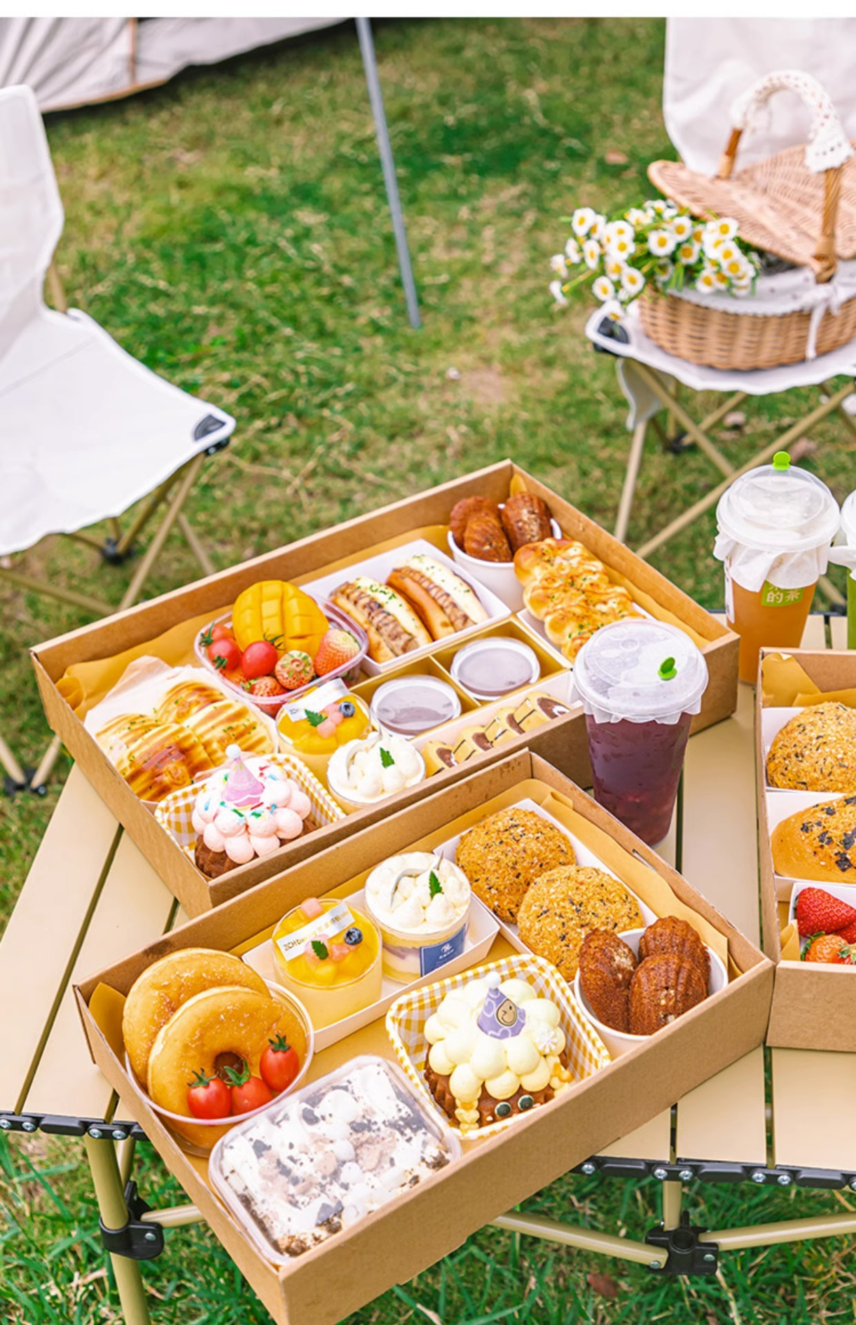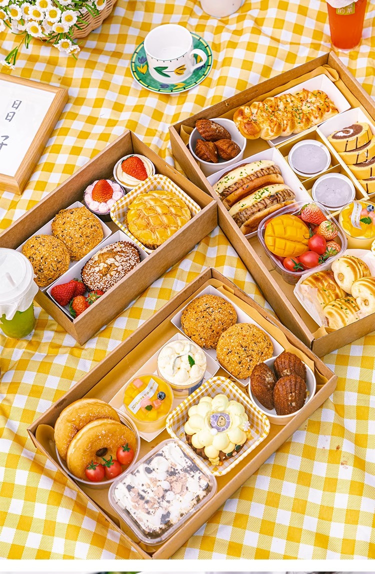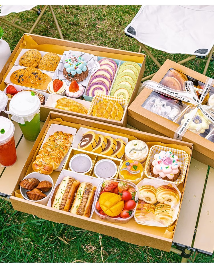 picnic box barbecue box disposable lunch box camping outdoor food grade kraft paper takeaway packing box wholesale