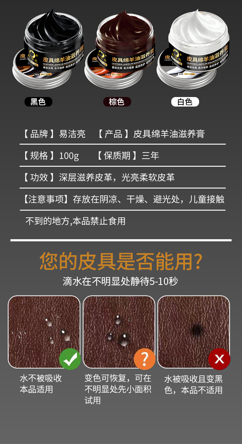 aluminum cover easy to clean bright 100g leather lanolin nourishing cream black