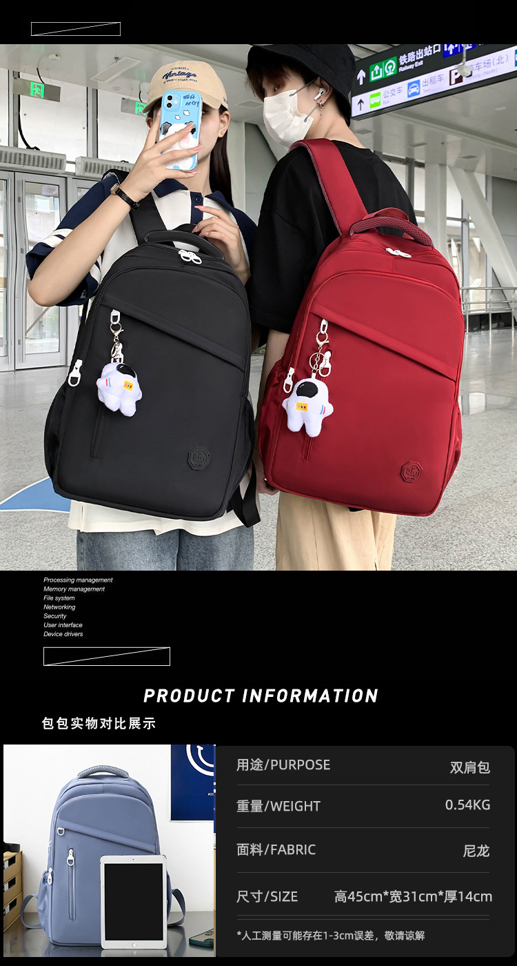 fall 2023 men's and women's college students lightweight and large capacity middle school students' backpack high school junior high school students casual backpack