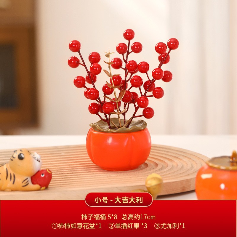 step by step (ladder) + grain fengdeng (photo frame) + lucky persimmon + wealth source guangjin (firewood) + chinese hawthorn potted plants + anti-dirty pad