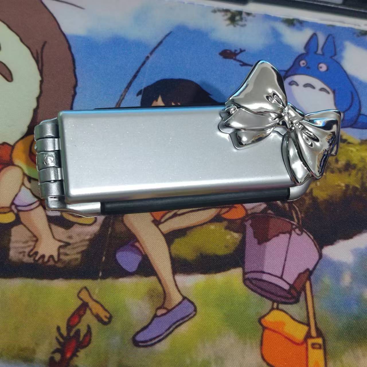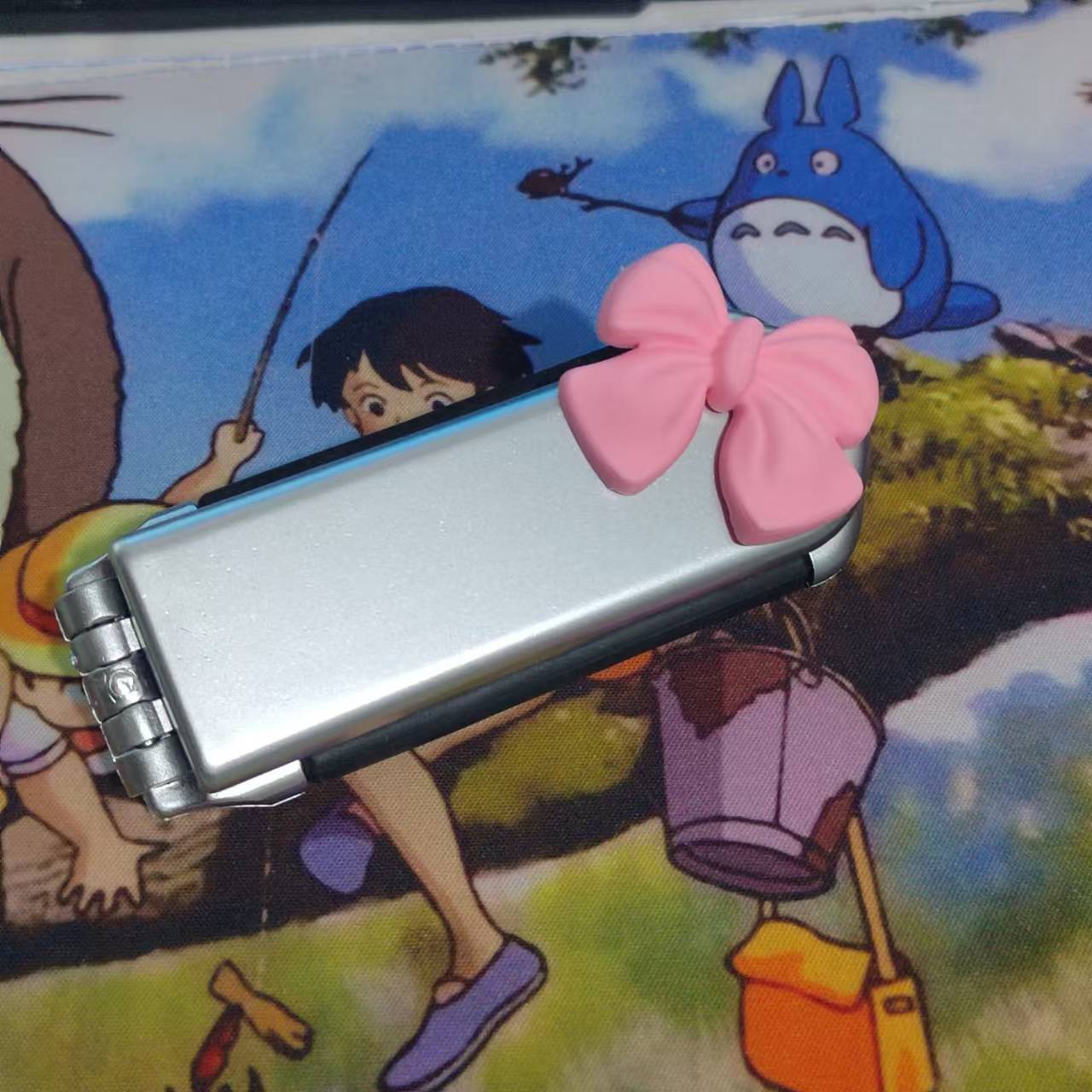 spray paint silver mirror and comb + pink bow