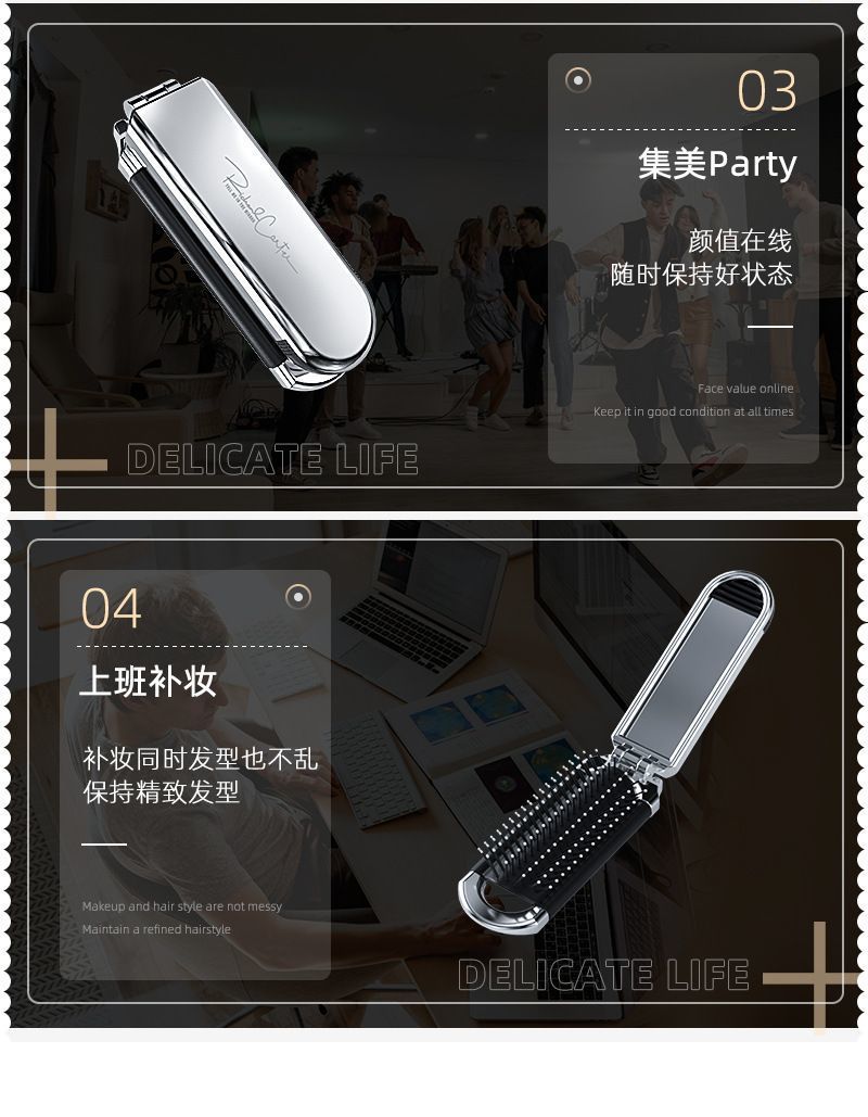 electroplating mirror and comb (mirror can be extracted)