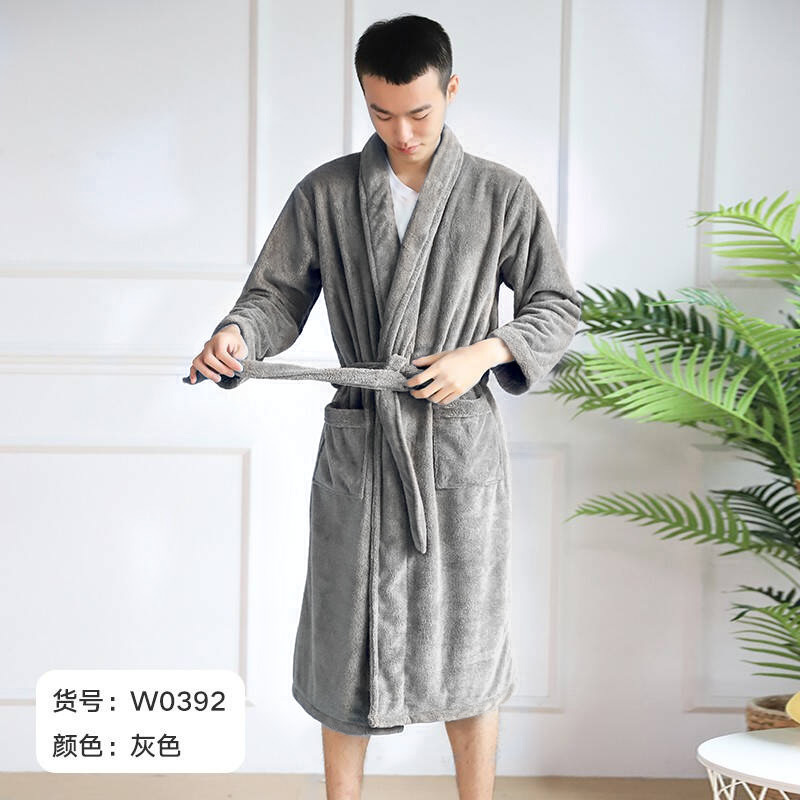 autumn and winter bathrobe thick coral fleece absorbent unisex household adult hotel bathrobe beauty salon thickened warm
