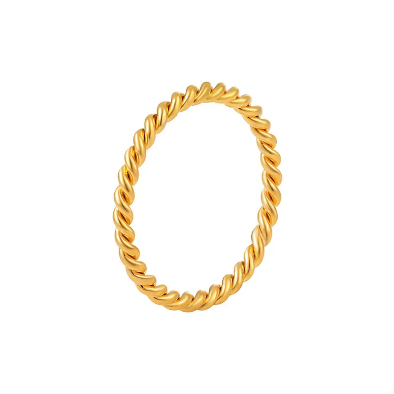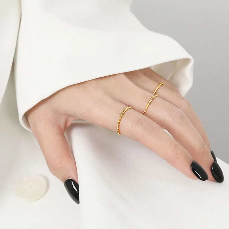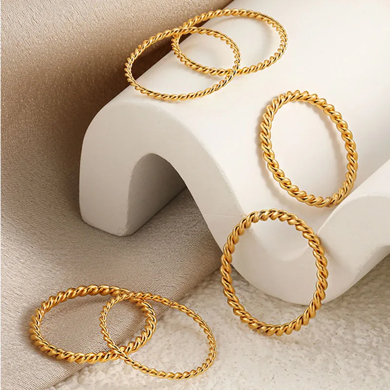 Ouj Korean Style Minimalist Jewelry Multi Sizes Custom Twisted 316L Stainless Steel Ladies 18K Plain Gold Finger Rings