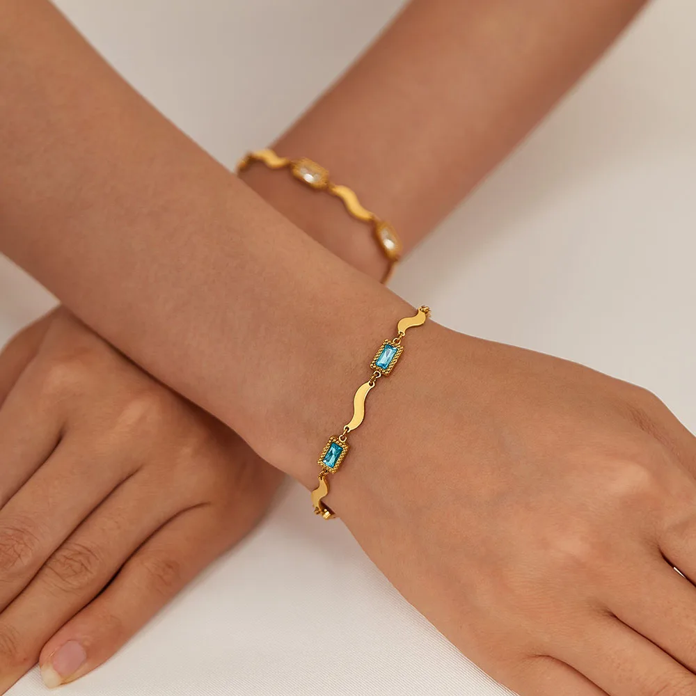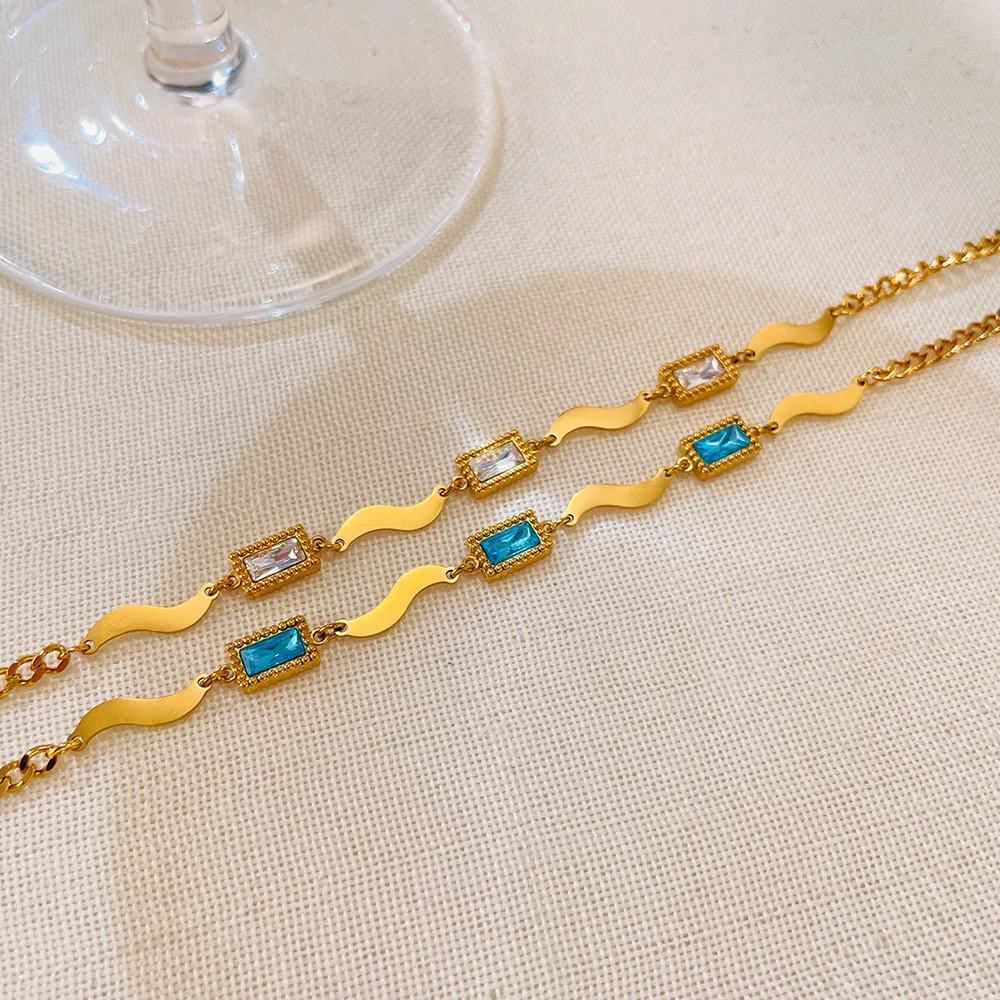 Product Name | Ouj Fashion Jewelry Adjustable 18K Gold Plated Stainless Steel Rectangle Colored Crystal Cubic Zirconia Link Bracelet For Women |