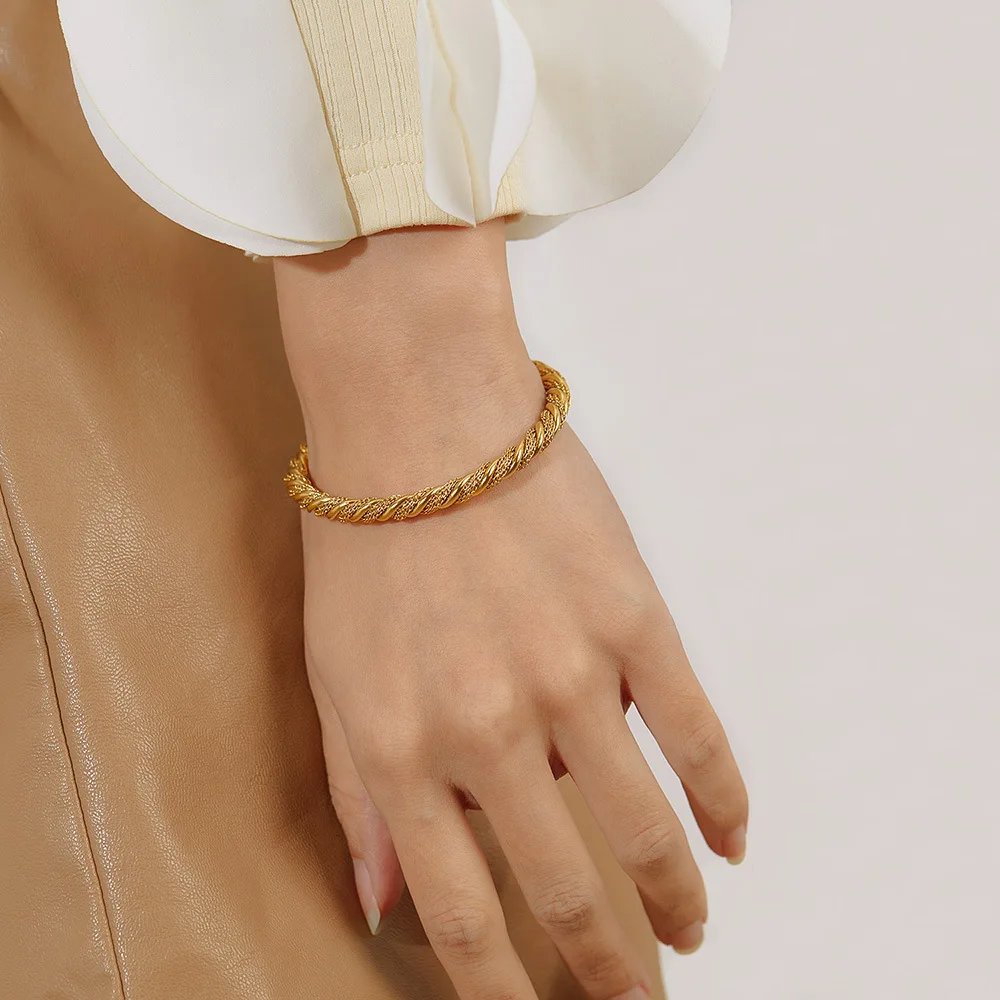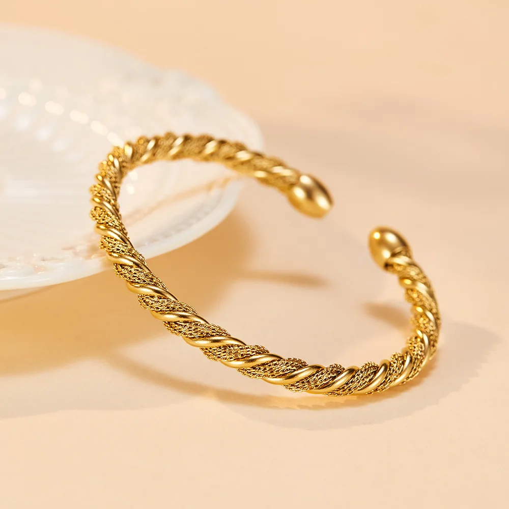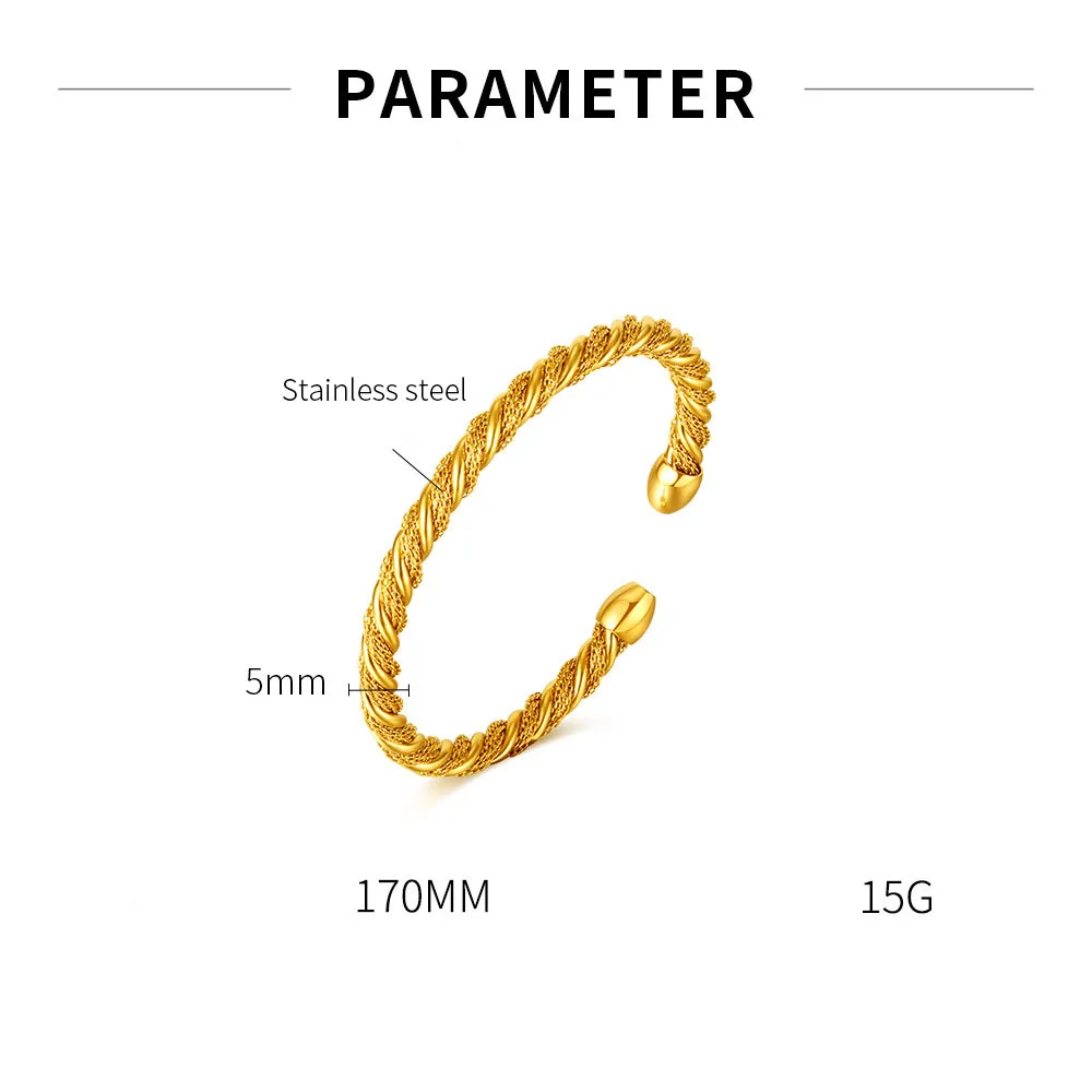 Product Name | Ouj Women Elegant Minimalist 5mm Twisted C Shaped Gold Plated Feminino Stainless Steel Open Cuff Bangles Bracelet |