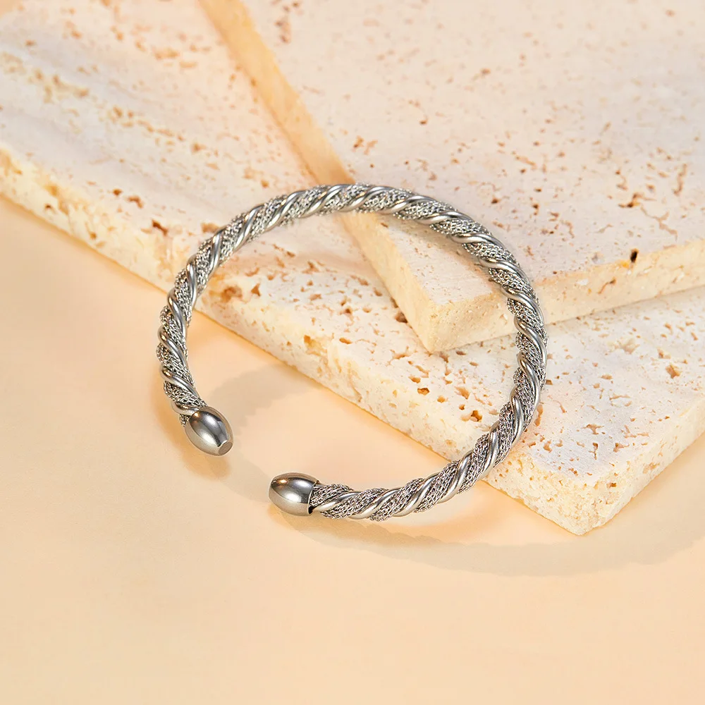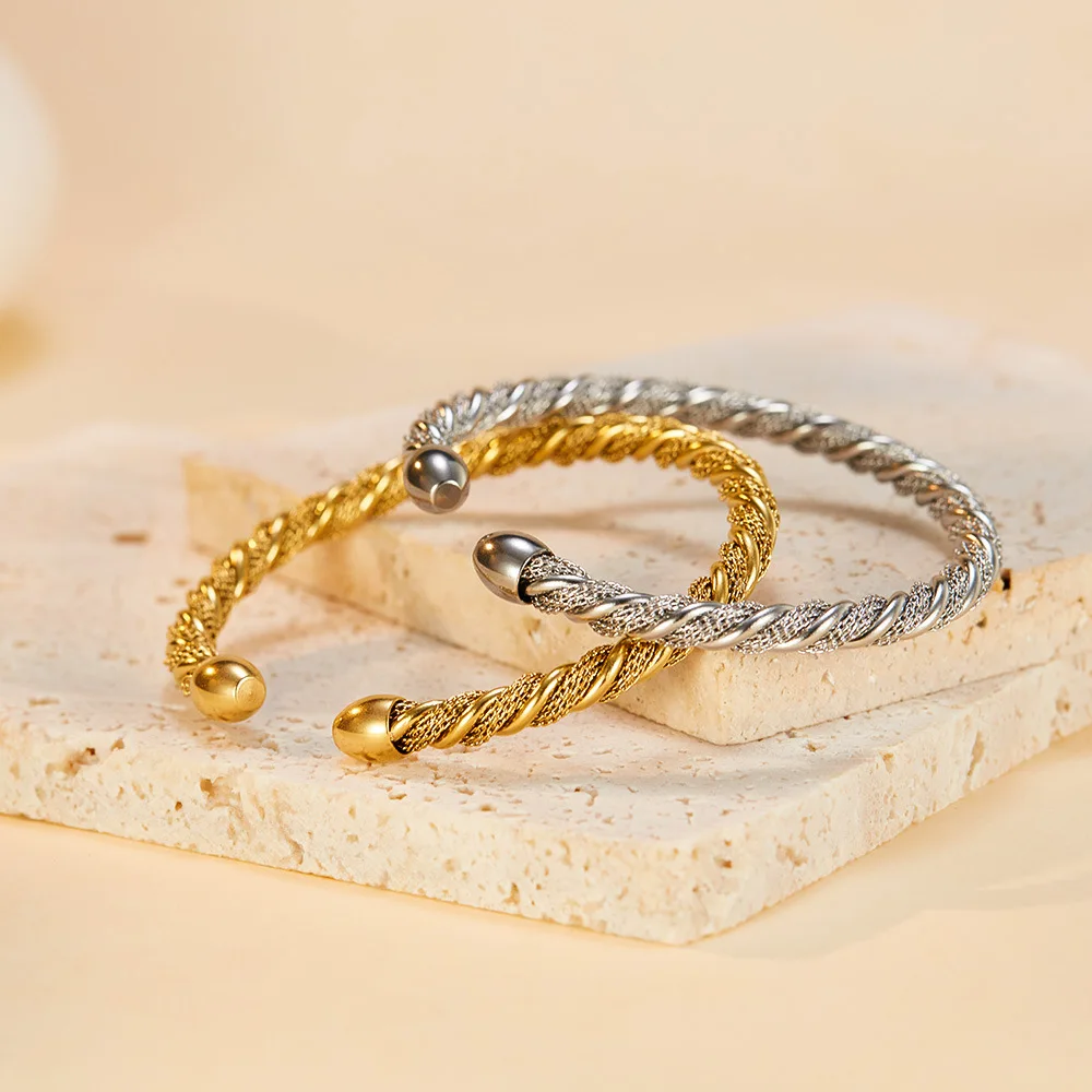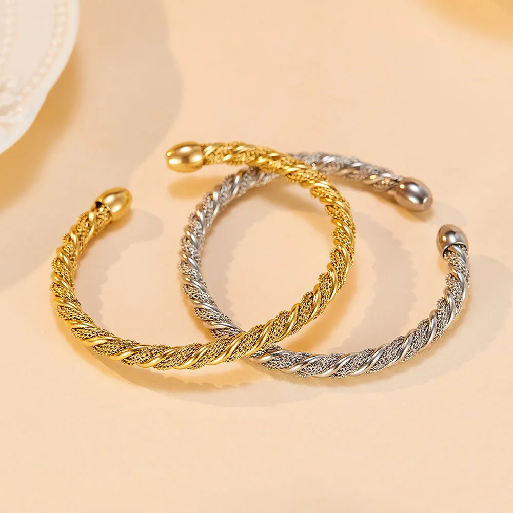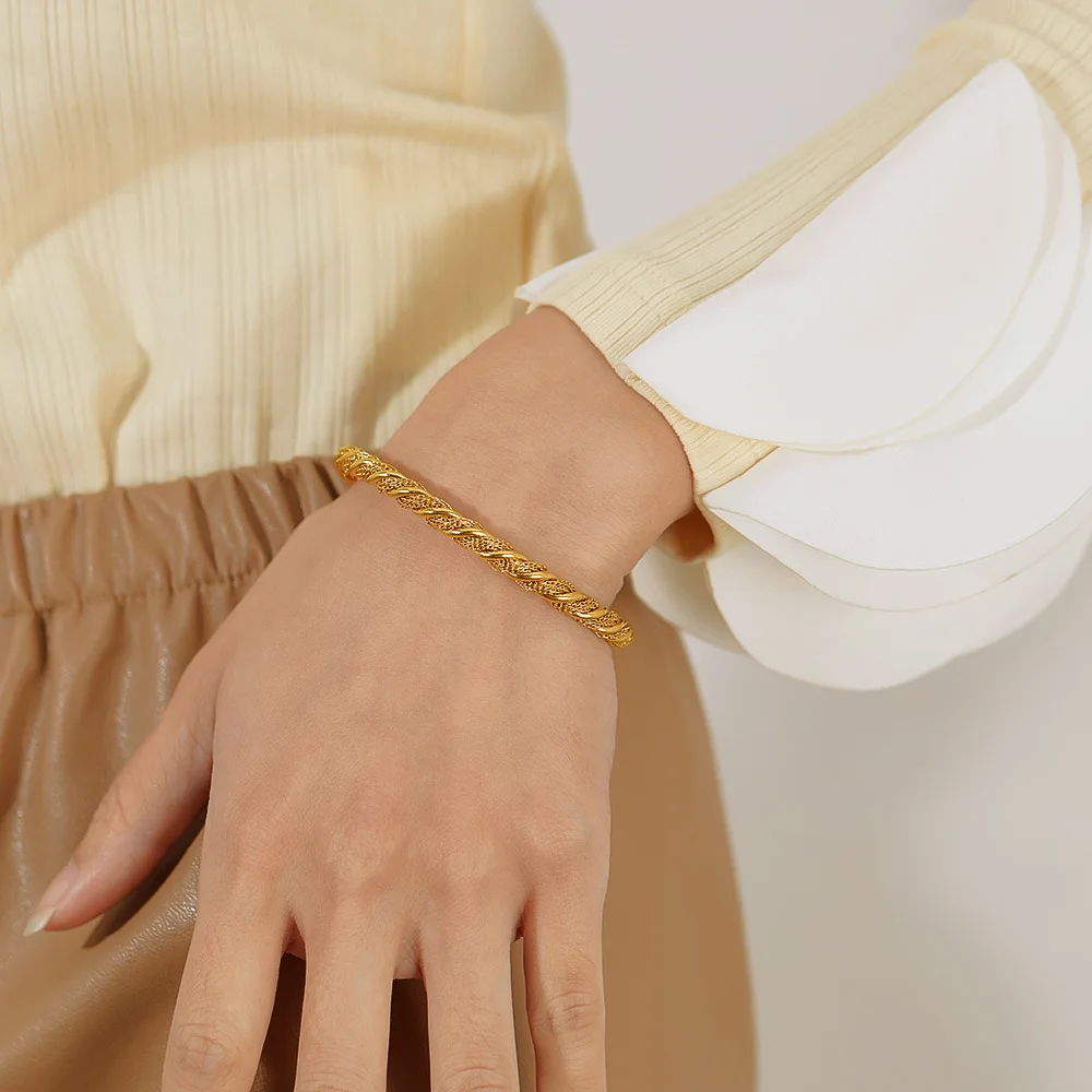Product Name | Ouj Women Elegant Minimalist 5mm Twisted C Shaped Gold Plated Feminino Stainless Steel Open Cuff Bangles Bracelet |