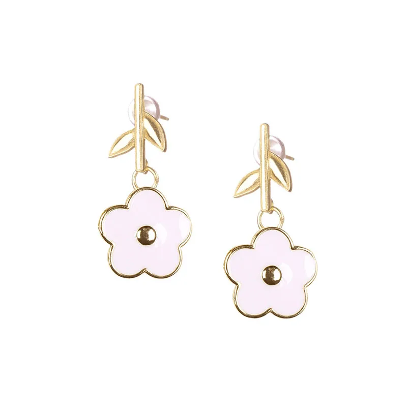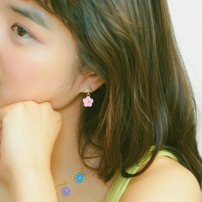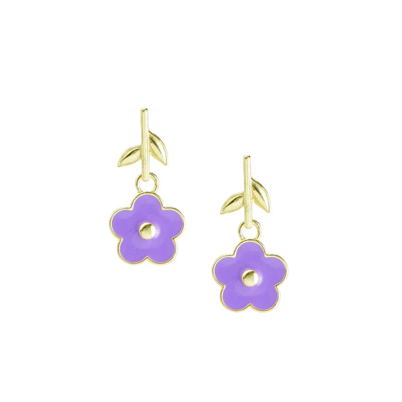Product Name | Ouj Stainless Steel Colorful Hawaiian Flower Drop Dangling New Small Gold Earrings Designs For Girls Jewelry Accessories |