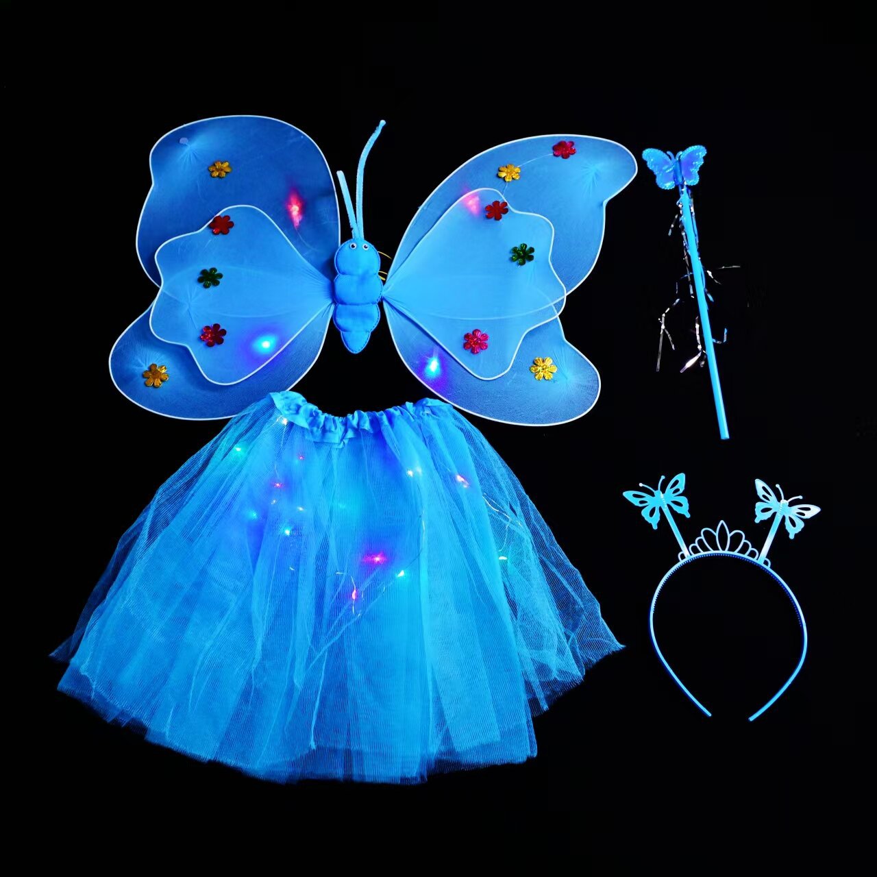 double-layer light wings and skirt 4-piece blue